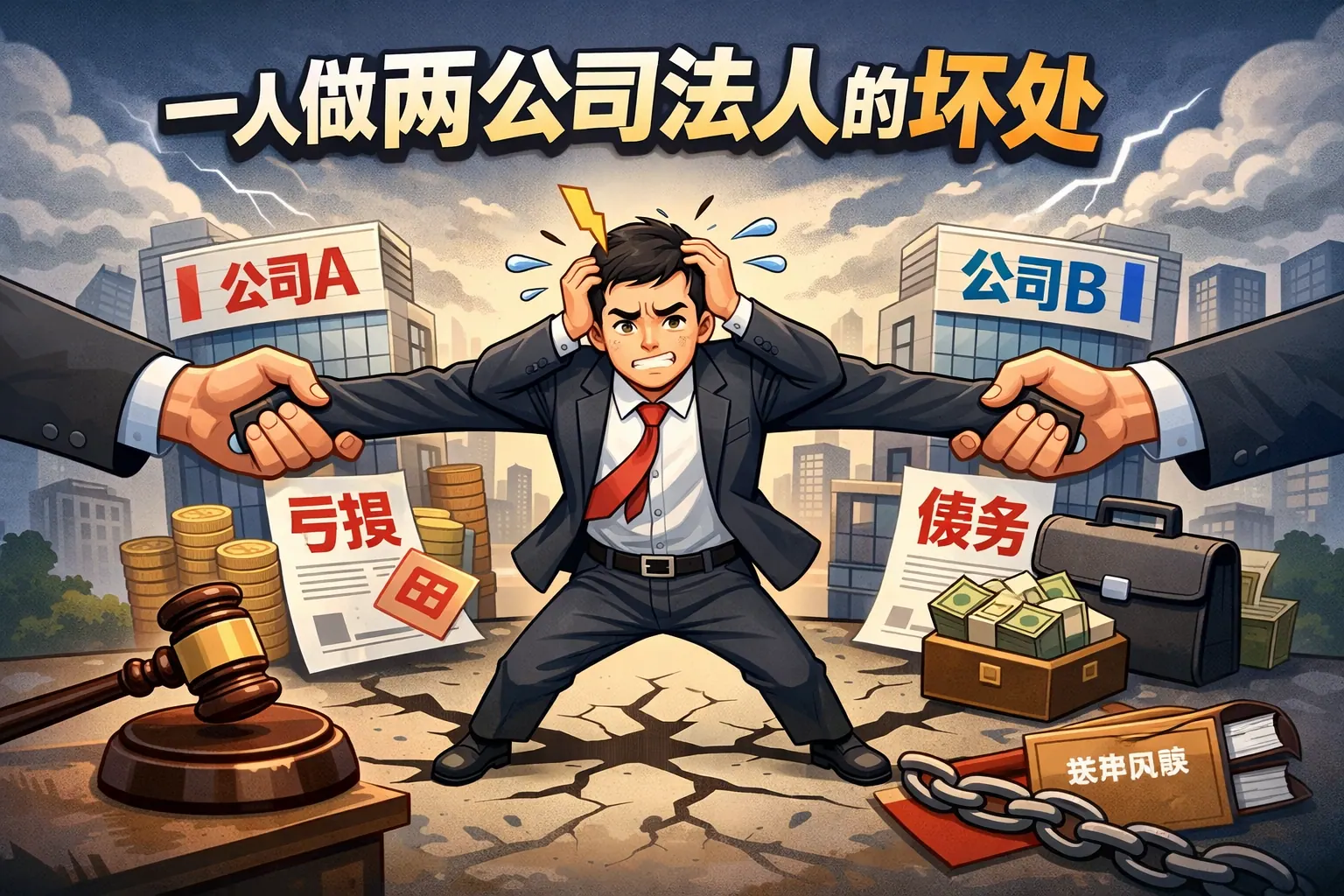 一人同时担任两家公司法定代表人在法律上并不被禁止,但实际经营中往往面临法律责任叠加、债务风险扩散、信用连锁影响、税务监管加强以及管理精力分散等多重隐患。一旦其中一家公司出现债务纠纷或行政处罚,法人个人及另一家公司都可能受到影响,甚至影响融资与投资。因此,在决定是否采取双法人结构前,应综合评估风险承受能力与治理结构安排,通过财务独立、合规审查和制度优化降低潜在风险。