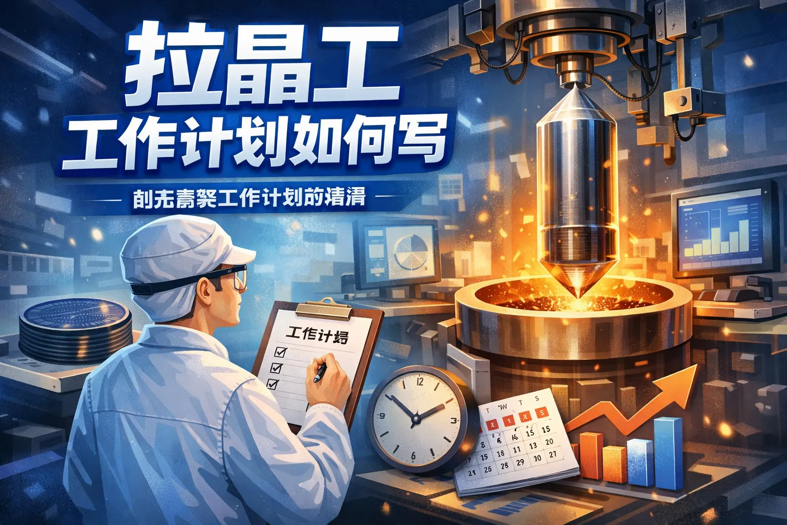 本文给出拉晶工工作计划的结构化写法:以产能-质量-安全为核心,按日/周/月分解目标与任务,绑定直径稳定性、良率、电阻率Cpk、位错与氧碳等KPI,并用SPC和点检清单实现过程控制;通过FMEA与EHS核对卡前置风险,把异常分级与8D闭环写进计划;借助看板与系统将计划可视化与可追溯,样例模板覆盖工艺参数、设备保养、交接班与复盘;最后以PDCA与双循环评审,将经验沉淀为SOP并持续对标行业基线,确保稳定执行与持续优化。