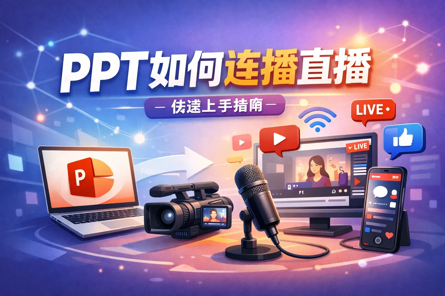 PPT连接直播的核心在于将屏幕画面通过共享或推流方式传输到直播平台,常见方法包括会议软件共享屏幕、使用推流软件进行专业直播以及通过采集卡实现高稳定性输出。普通会议场景可选择屏幕共享,商业直播或品牌发布更适合推流方式。提升直播质量需关注画面比例、字体大小、网络带宽和音频设备配置。随着直播技术升级,PPT直播将向更智能化、低延迟和多场景融合方向发展。