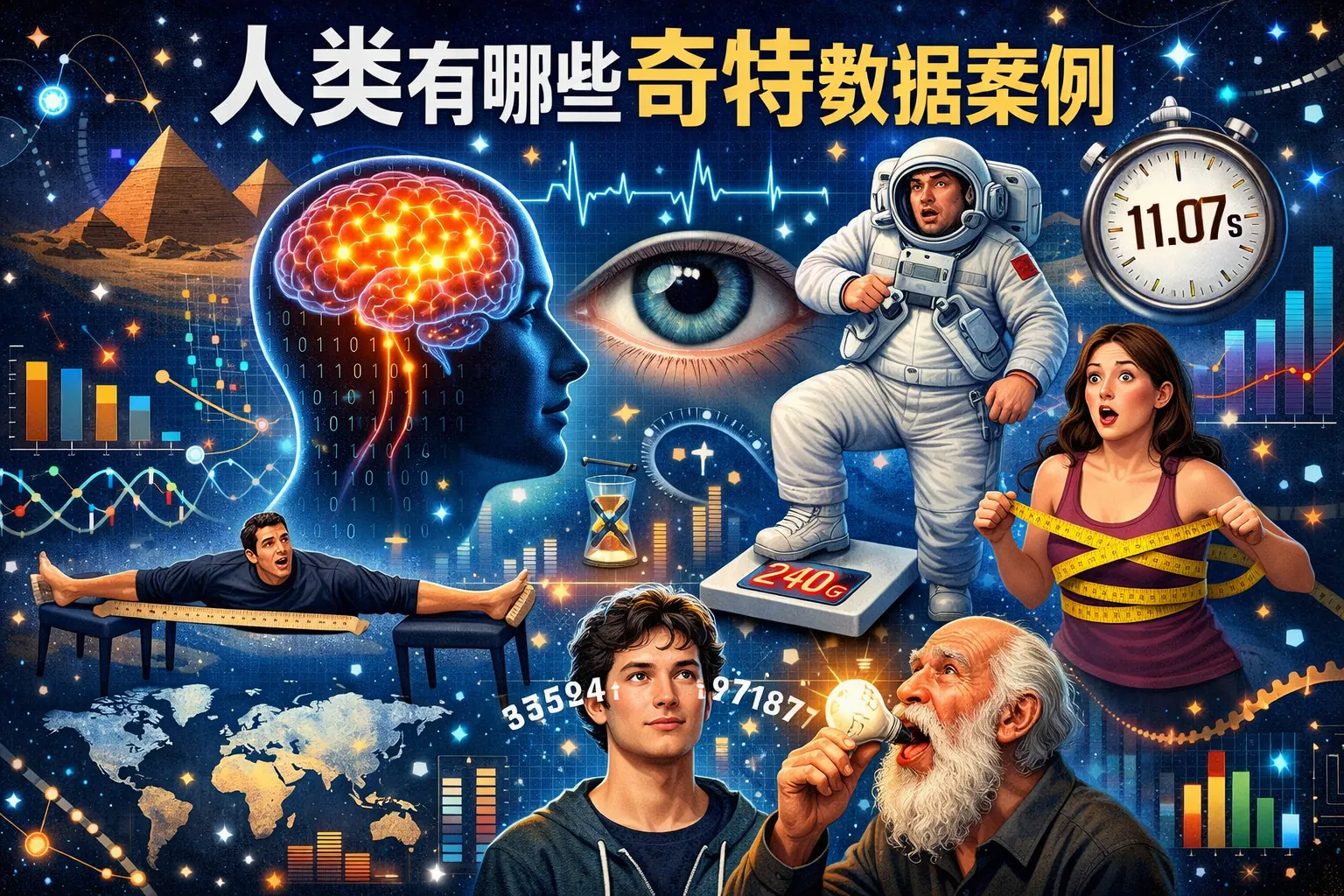 人类社会中存在大量突破常识的奇特数据案例,包括生理极限、超长寿命、认知差异、人口结构变化与数字行为激增等现象。这些数据往往呈现均值与极值之间的巨大差距,反映环境、制度与科技对人类发展的深刻影响。随着数字化与科技进步推进,未来人类数据将更加精细化与极端化,成为理解社会结构与个体潜能的重要依据。