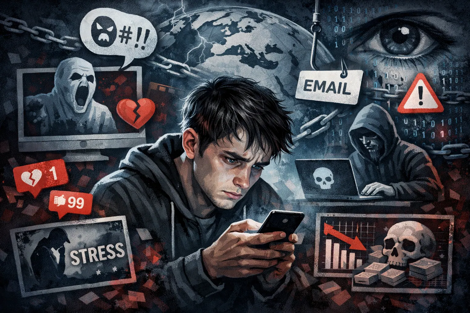 网络的负面影响主要体现在成瘾风险上升、心理健康问题增加、青少年注意力下降、网络欺凌普遍存在以及个人信息泄露成本持续攀升等方面。权威数据显示,过度上网与焦虑抑郁呈显著相关,全球数据泄露平均成本不断提高,青少年遭遇网络欺凌比例较高。同时,网络还可能加剧信息茧房、削弱现实社交与改变生活方式。未来随着数字化程度加深,网络治理与数字素养提升将成为缓解这些问题的关键方向。