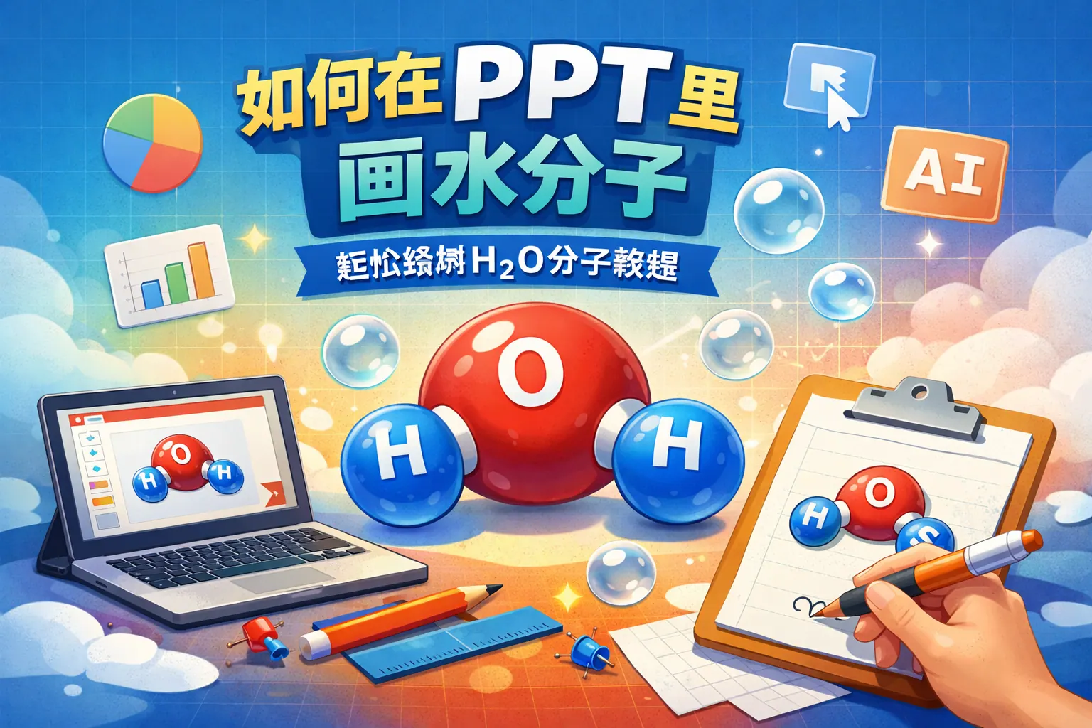 在PPT里画水分子的关键是掌握其“一个氧原子、两个氢原子、104.5°键角”的结构特征,并通过形状绘制、角度精确控制、颜色规范和组合功能实现专业呈现。二维结构适合基础教学,球棍模型兼顾直观与专业,三维空间填充模型更具视觉冲击力。结合标准配色与科学数据标注,可显著提升演示质量与学术感。随着三维与智能绘图功能的发展,分子结构可视化将更加高效,但准确性始终是核心。