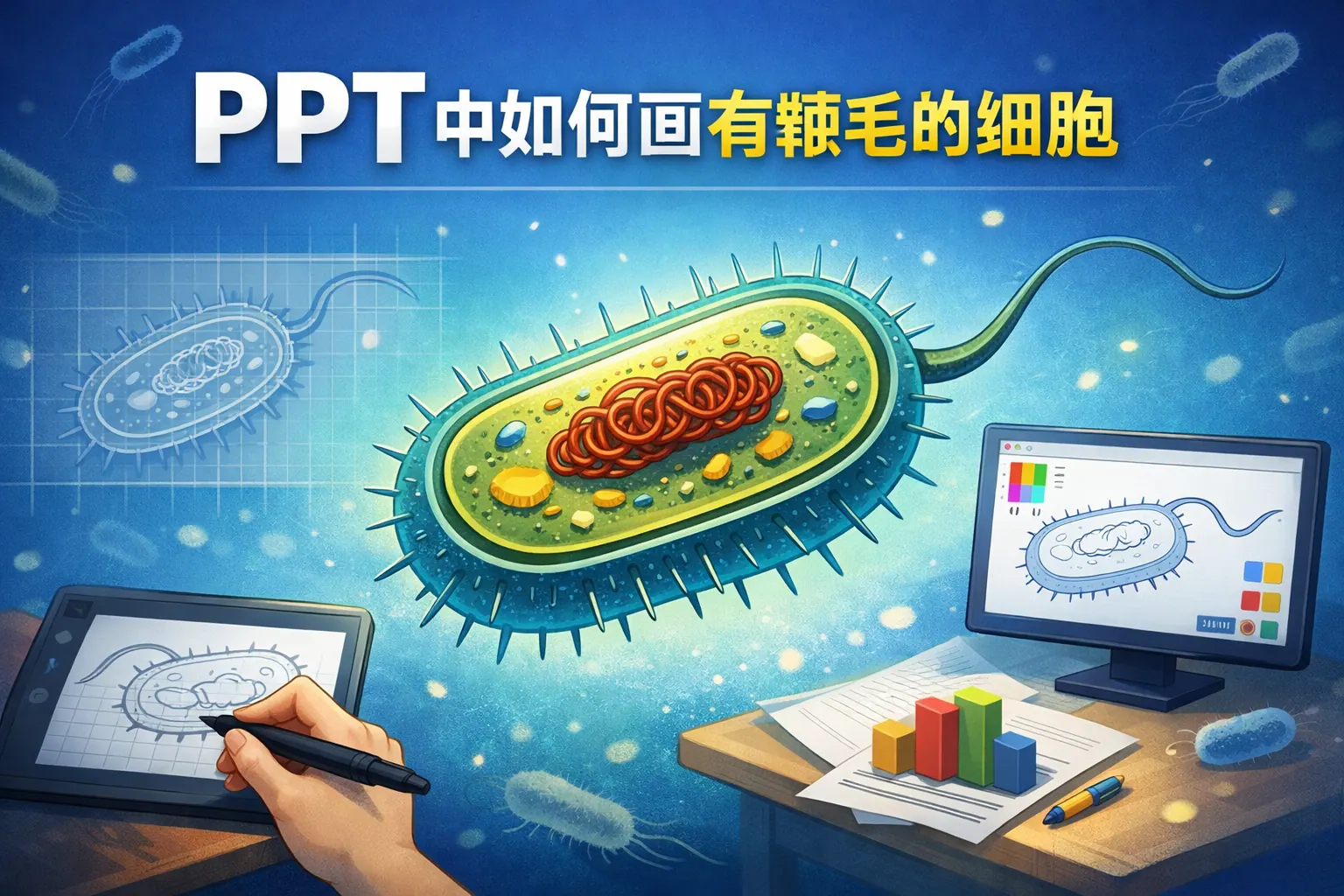 ppt中如何画有鞭毛的细胞