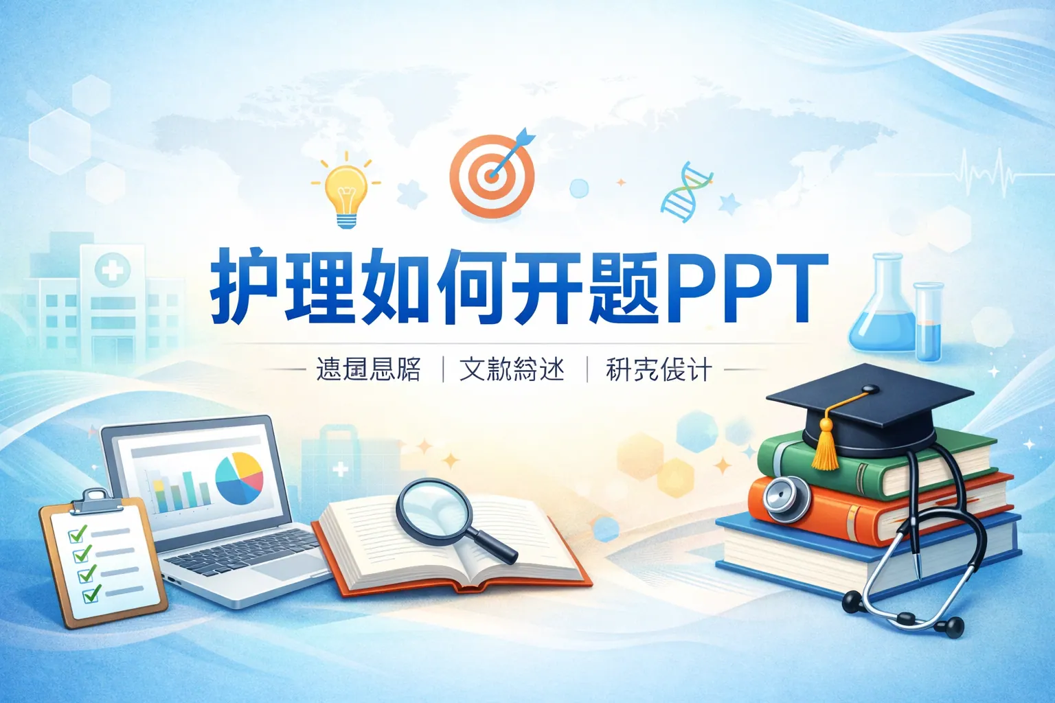 护理开题PPT的关键在于围绕研究问题构建严谨逻辑框架,包括研究背景、文献综述、研究目标、方法设计、创新点与可行性分析等核心模块。制作过程中应注重数据支撑与权威文献引用,确保目标可量化、方法匹配、样本科学,同时通过清晰的结构与专业化表达提升说服力。高质量护理开题报告不仅体现课题价值,更反映科研思维与循证能力,是护理科研能力的重要体现。未来护理开题将更加注重数据分析能力与规范化研究设计。