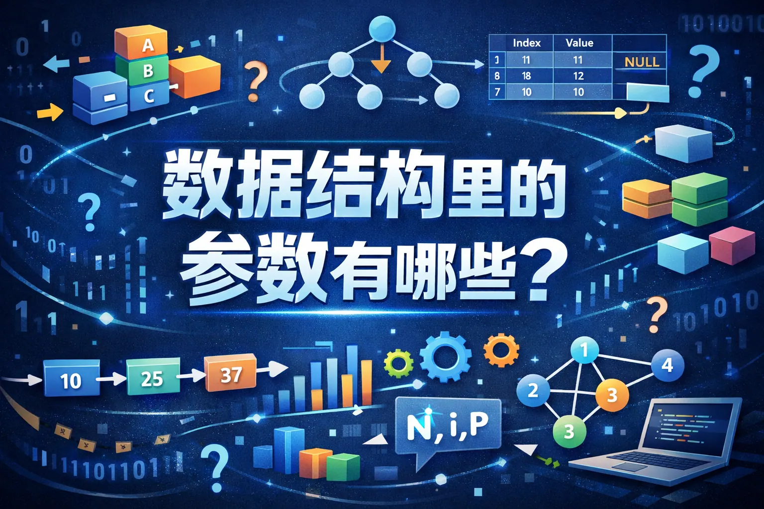 数据结构中的参数是用于描述数据组织方式、性能表现和扩展能力的关键变量,主要包括逻辑结构参数、存储结构参数、性能复杂度参数、容量规模参数以及约束与动态参数等。不同数据结构如数组、链表、树、图各有核心参数,这些参数直接影响查找、插入、删除效率以及系统可扩展性。理解数据结构参数体系,有助于算法优化、架构设计与性能提升,是计算机基础能力的重要组成部分。