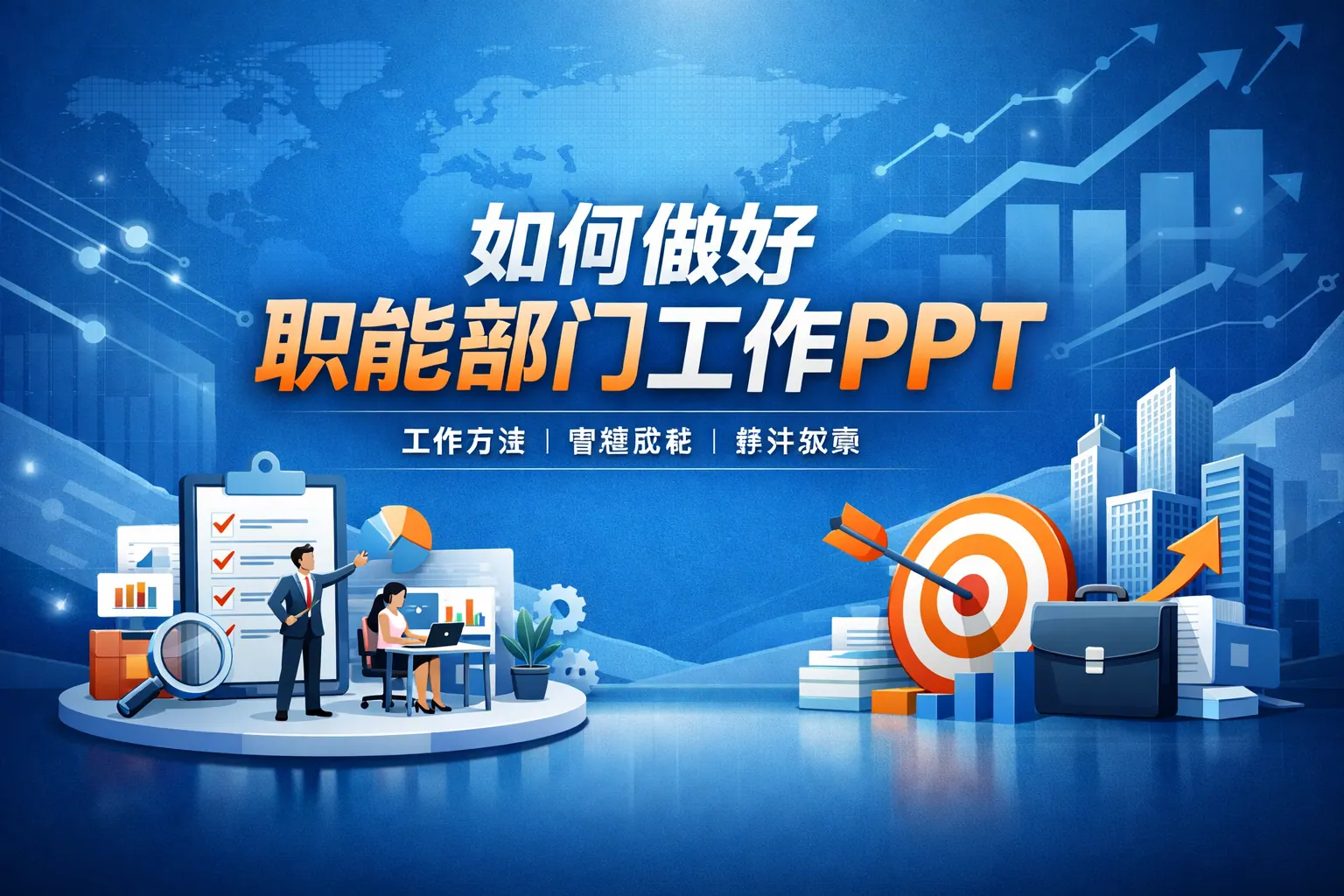做好职能部门工作PPT的核心在于目标导向、结构清晰、数据量化和战略对齐。高质量汇报应突出成果而非事务,围绕战略支持、成本优化和效率提升展开,通过数据强化价值表达,并采用问题闭环逻辑增强说服力。同时优化视觉设计与结构层次,针对不同职能部门特点调整侧重点。未来职能部门PPT将更加数据化与战略化,强调价值创造与持续改进能力。