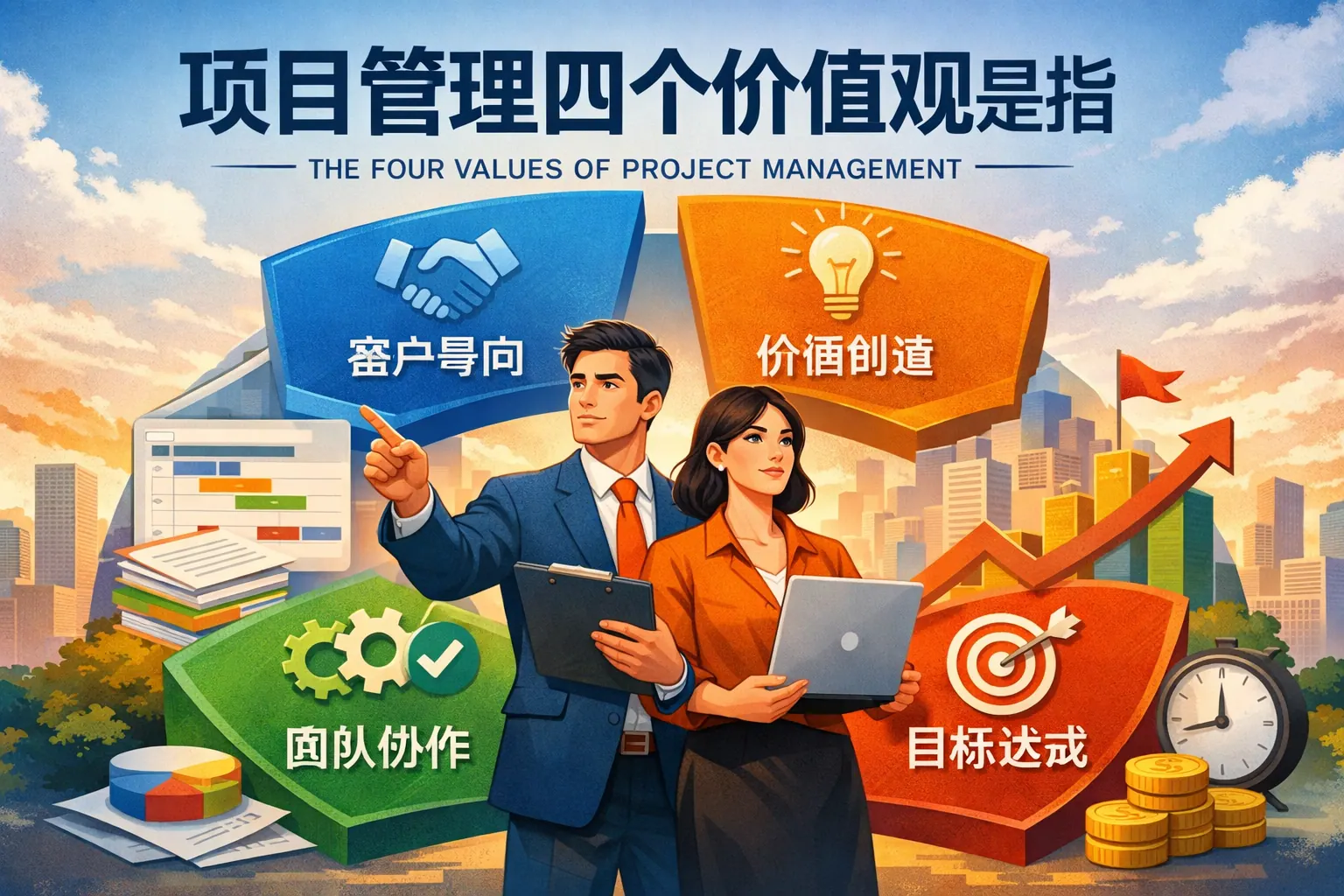 项目管理的四个价值观包括价值导向、客户中心、协作共创与持续改进。这四项理念构成现代项目管理的核心框架,强调项目应围绕业务价值展开,以客户需求为检验标准,通过跨部门协作实现目标,并通过持续复盘不断优化流程。它们相互支撑,形成价值实现闭环,是组织提升项目成功率与战略执行力的重要基础。未来在数字化与智能化趋势下,这四个价值观仍将是项目治理的核心方向。
