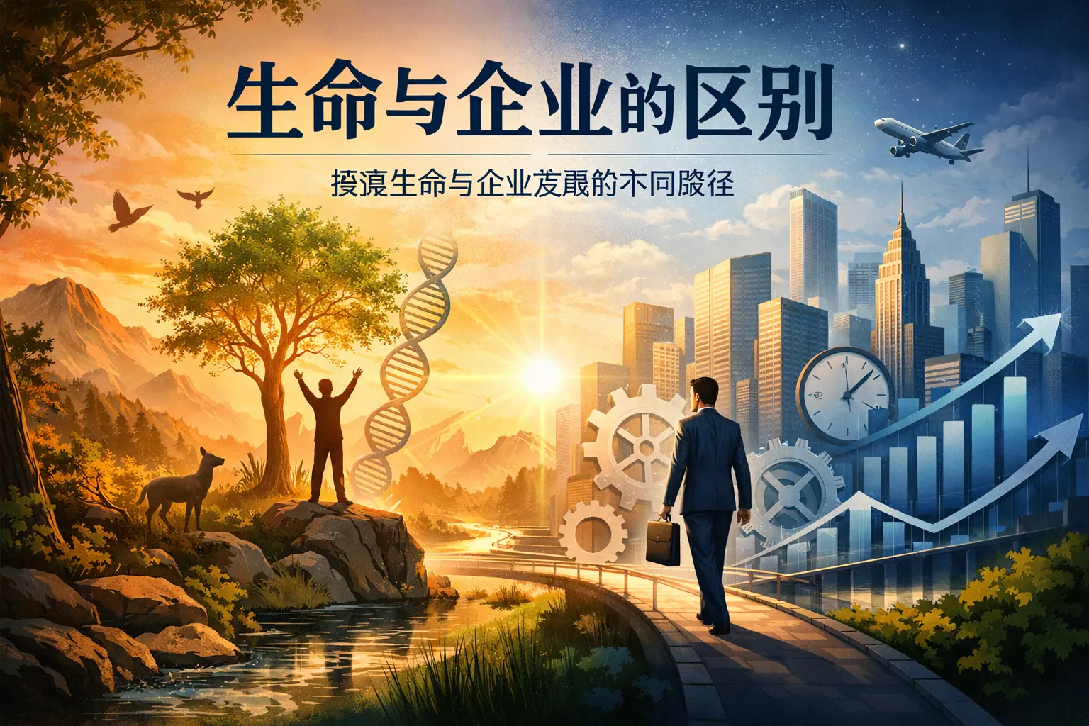 生命与企业的根本区别在于起源与目标不同:生命源于自然进化,以生存和繁衍为核心;企业源于人为制度设计,以价值创造和持续经营为目标。二者在结构边界、进化方式、激励机制、风险形态和社会责任等方面均存在显著差异。生命遵循自然法则运行,进化缓慢且无目的;企业依靠战略决策和制度安排主动变革,并承担社会责任。未来企业可能更加自适应,但本质仍是社会组织而非自然生命。