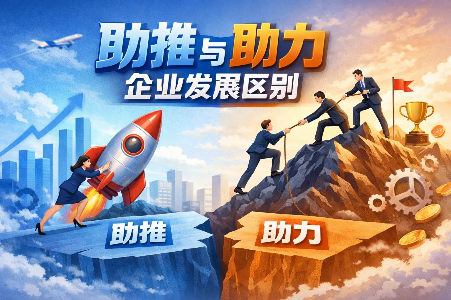 本文系统区分了助推与助力在企业发展中的内涵与作用方式,指出助推侧重通过制度与环境引导企业战略方向,而助力则通过资源与能力投入直接提升执行效果。二者在作用机制、主体角色、风险成本及适用阶段上均存在差异,但在实践中具有高度互补性。企业唯有结合自身发展阶段,协同运用助推与助力,才能实现长期稳健成长。