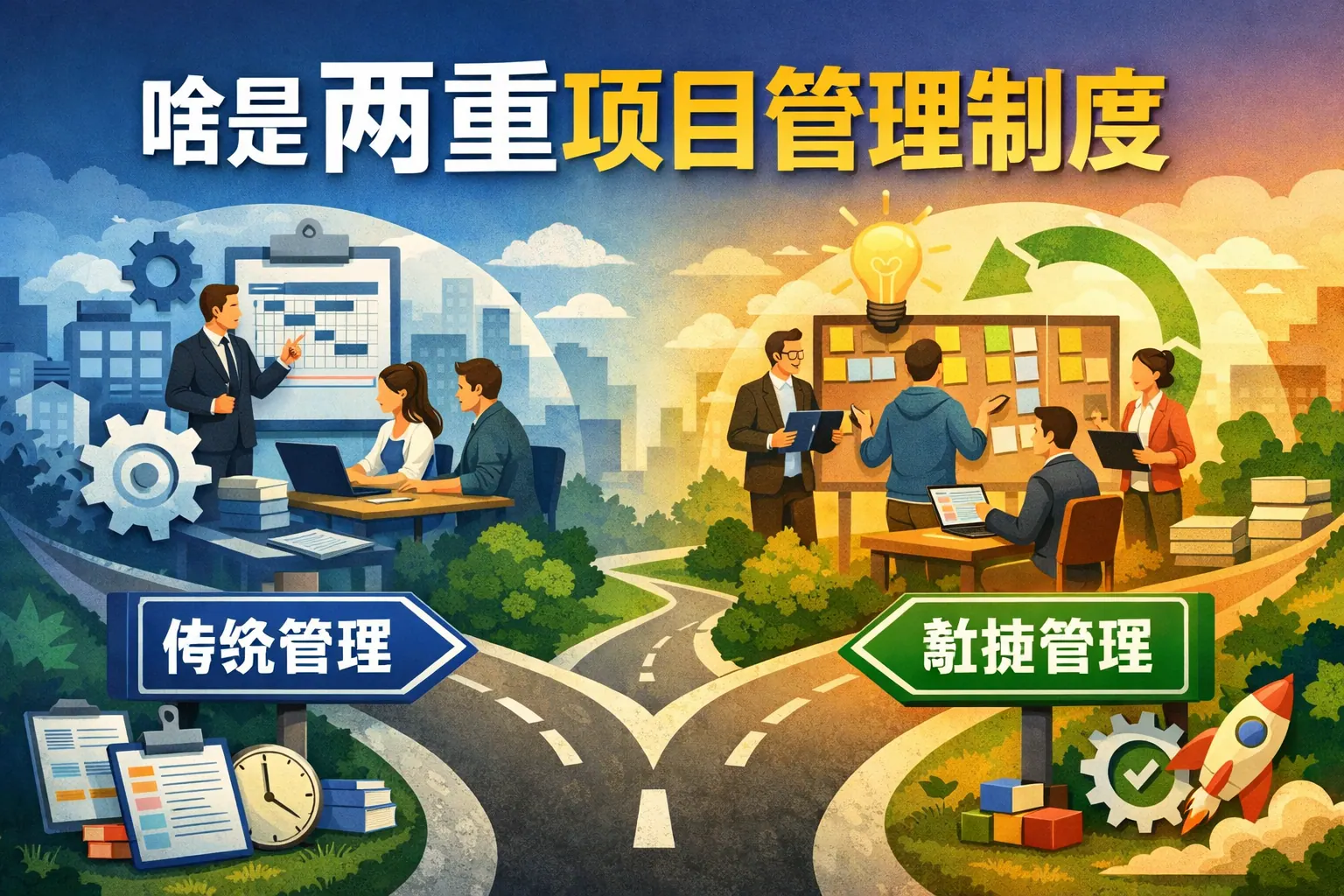 两重项目管理制度是指在同一组织内同时运行两条相对独立的项目管理线,通常表现为战略控制与业务执行分离或投资监管与实施管理分离。其核心在于通过权责分离和双重监督提升风险控制能力和治理透明度,适用于大型投资项目和复杂组织结构。该制度优势在于强化监督与规范管理,但可能带来决策效率下降问题。未来趋势是与数字化平台和敏捷管理融合,实现更加高效与透明的双轨治理模式。