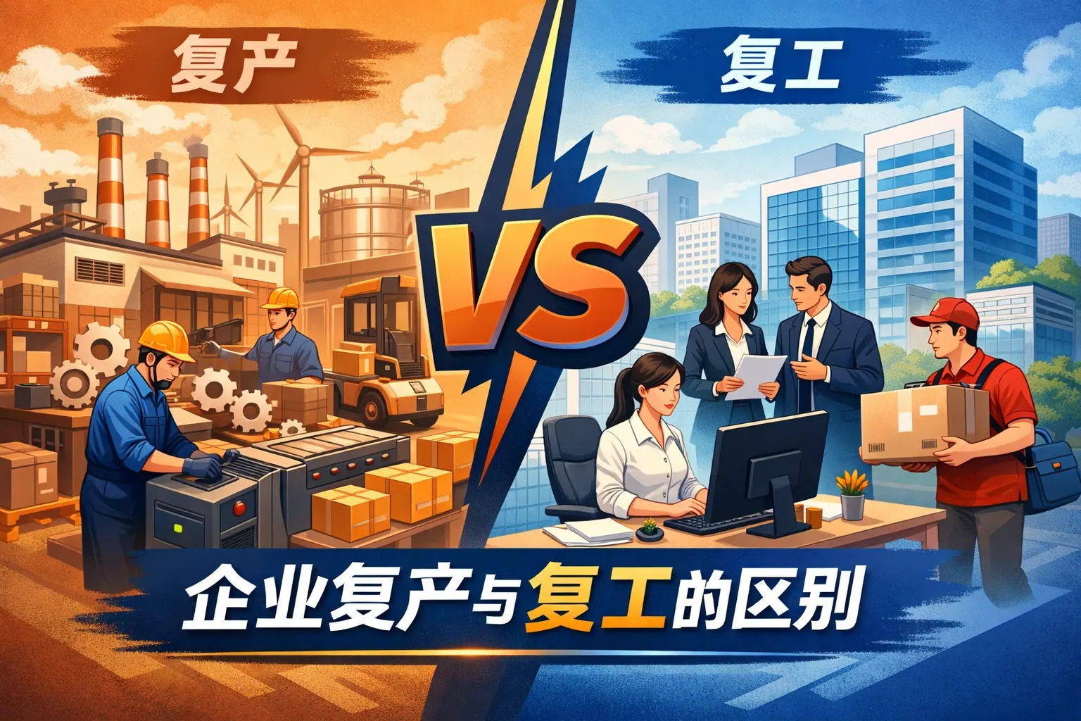 企业复产与复工的核心区别在于恢复对象不同:复工侧重员工到岗和组织运转恢复,复产侧重生产设备、产能与供应链体系的恢复。复工是运营重启的起点,复产是价值创造能力恢复的关键。两者在管理流程、成本结构、风险控制和衡量指标上均存在明显差异。制造业往往需要同步推进复工与复产,而服务业更强调复工。未来企业应将复工复产机制纳入长期韧性建设体系,通过优化供应链和提升数字化协同能力增强抗风险能力。