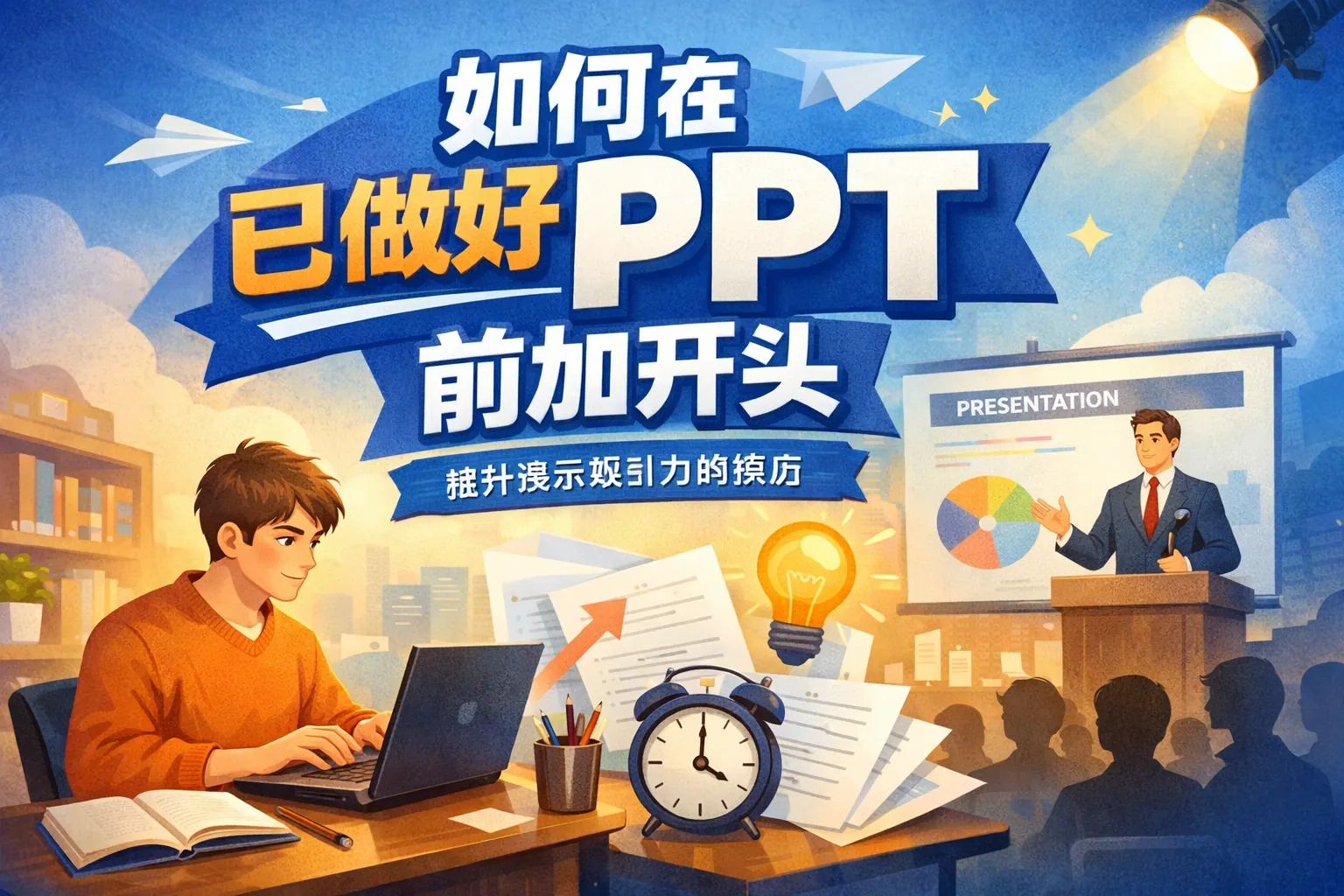 在已完成PPT内容的前提下补充开头,关键不在于简单增加页面,而在于通过结构重组建立听众理解框架。一个有效的PPT开头应完成背景说明、问题提出、目标明确与结构预告四项任务,并根据汇报场景选择合适的开场模型。通过逻辑前置、视觉统一和表达优化,可以在不打乱原有内容的情况下显著提升整体呈现效果和说服力。随着线上汇报增多,高质量开头将成为专业表达的重要标志。