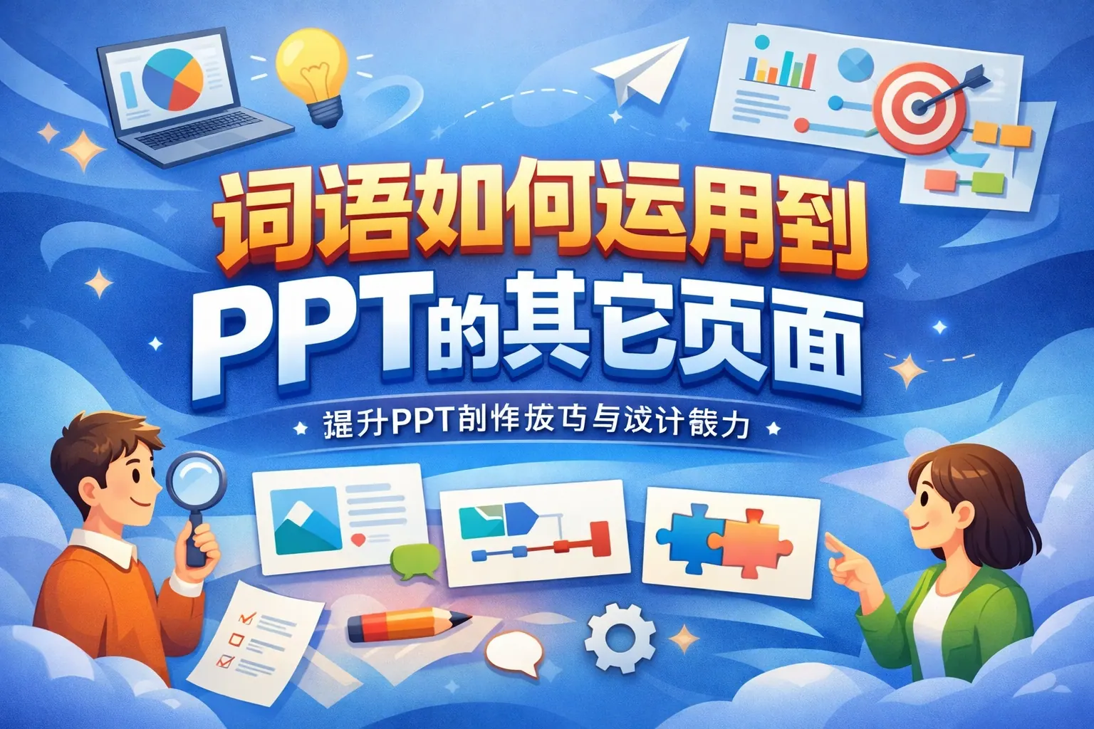 在制作演示文稿时,核心词语不应只停留在标题页,而应贯穿目录页、内容页、图表页、过渡页与总结页,形成统一表达结构。通过在不同页面系统化延展和强化关键词,可以提升逻辑连贯性、信息密度与观众记忆度。结合视觉设计与结构规划,关键词驱动的表达方式能够有效降低理解成本,增强专业感与说服力,是提升PPT整体质量的重要方法。未来,结构化与关键词聚焦将成为高效演示的核心趋势。