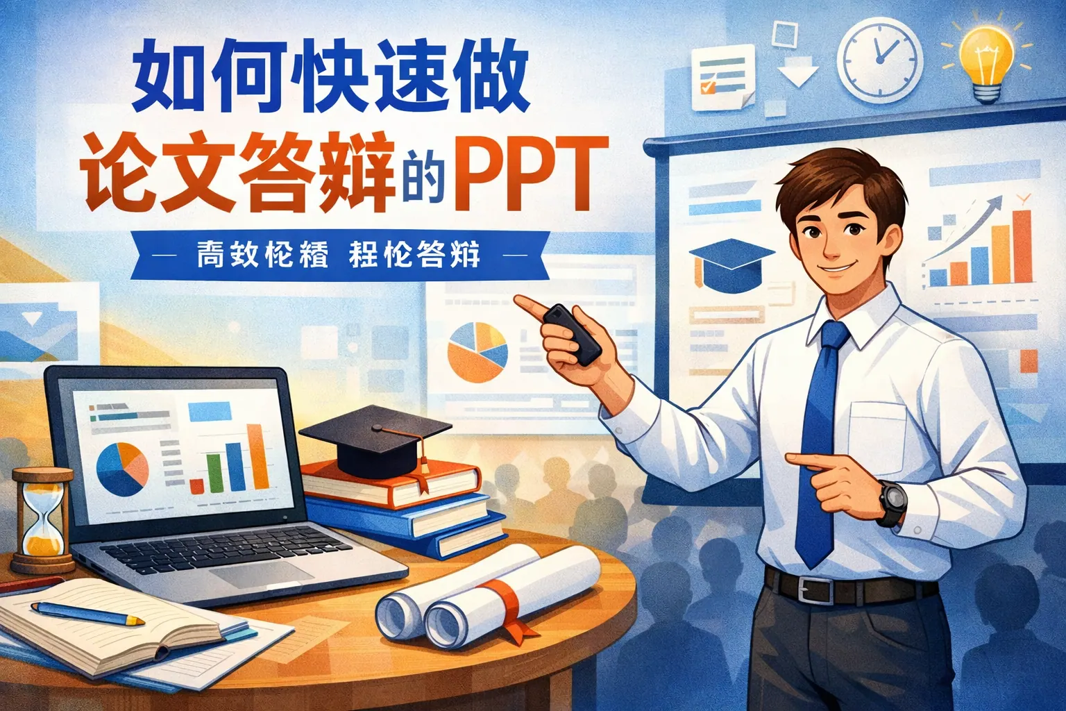 快速完成论文答辩PPT的关键在于以评委视角重构信息,而非复述论文内容。通过套用标准答辩结构、反向提炼论文核心论点、控制页数与时间匹配,并借助图表与流程图提升可视化表达,即使在极短时间内也能做出逻辑清晰、论证可靠的答辩PPT。重点不是设计精美,而是结构清楚、信息聚焦,确保评委能迅速理解研究问题、方法、结果与创新点,从而降低答辩风险并提升整体表现。