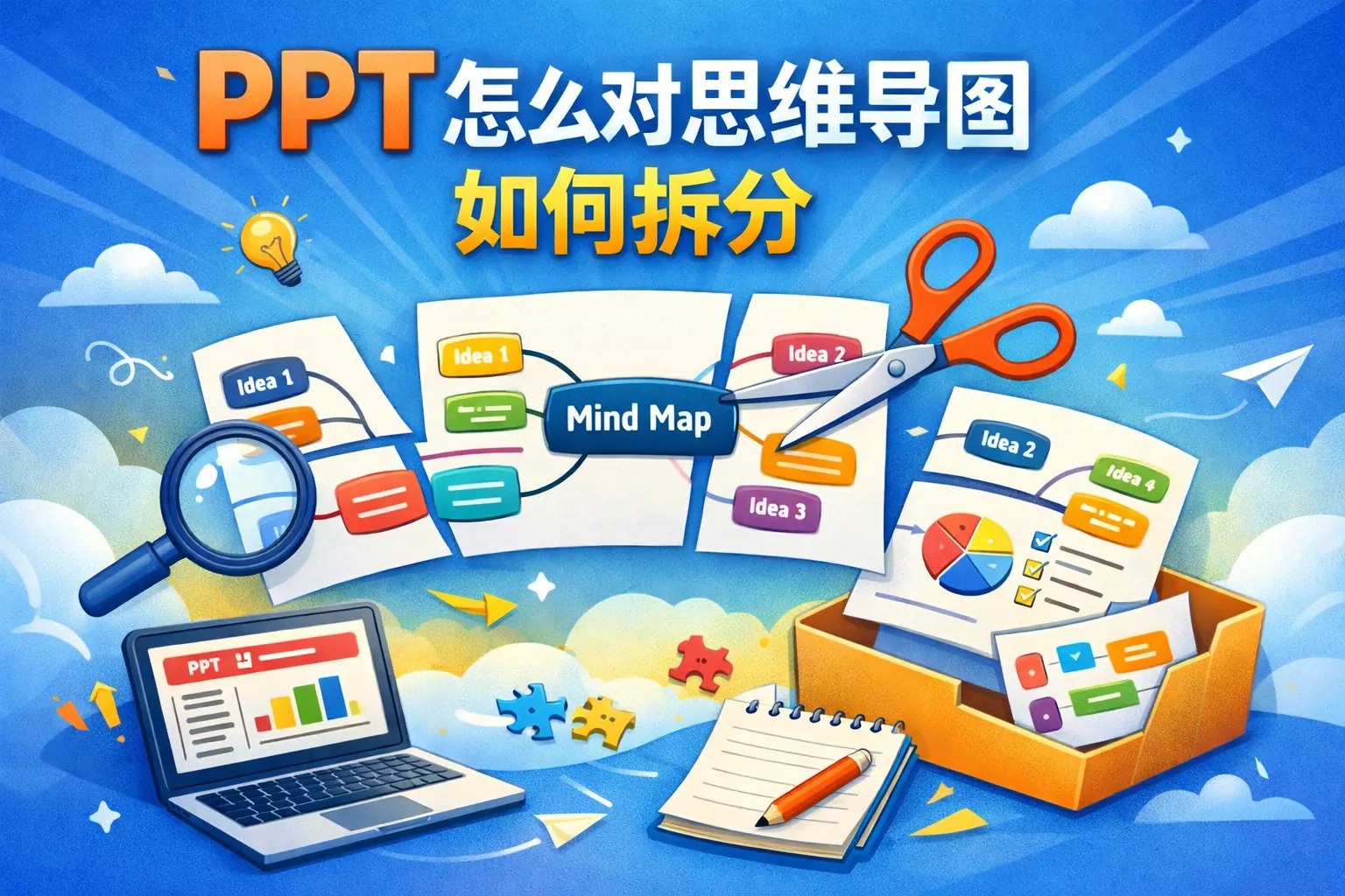 本文系统解答了 PPT 如何对思维导图进行拆分的问题,核心观点是:思维导图用于发散思考,而 PPT 用于线性表达,拆分的本质是将并列结构转化为可讲述的演示逻辑。文章从拆分前的导图优化入手,详细讲解了按一级分支、演示逻辑和单页认知动作进行拆分的方法,并结合不同使用场景给出差异化策略,同时分析了常见错误与版式呈现要点,最终指出未来趋势将从“会拆分”升级为“具备结构化表达能力”。
