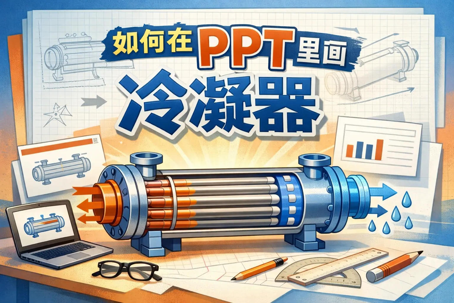 本文系统讲解了如何在 PPT 中绘制冷凝器示意图,核心观点是通过结构抽象而非写实绘图,实现专业、清晰且易理解的表达。文章从冷凝器结构认知入手,详细介绍了 PPT 基础工具设置、风冷与水冷冷凝器的标准画法,以及板式和微通道冷凝器的简化技巧,并通过对比表分析不同绘制方式的适用场景。同时强调颜色、对齐和版式对专业感的重要影响,指出常见错误及优化方法,最后展望了 PPT 冷凝器绘制向模块化和可视化演进的趋势。