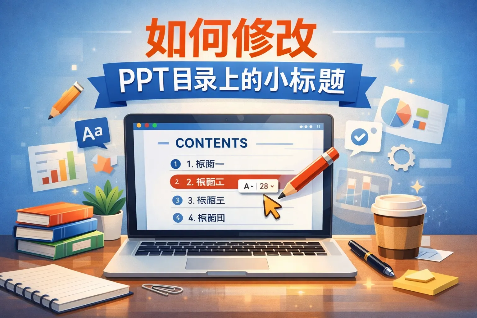 修改PPT目录小标题的关键在于结构重构、语言精简与逻辑统一。通过梳理内容层级、提炼核心关键词、统一表达形式并优化视觉排版,可以让目录页更清晰专业。不同场景应采用不同结构逻辑,如汇报型强调问题闭环、路演型强调价值递进。精简冗余词汇、统一名词结构、控制字数长度,是提升目录质量的有效方法。未来随着结构化表达与智能辅助工具的发展,目录优化将更加注重信息密度与逻辑清晰度。目录页本质上是思维结构的呈现,优化目录就是优化表达能力。