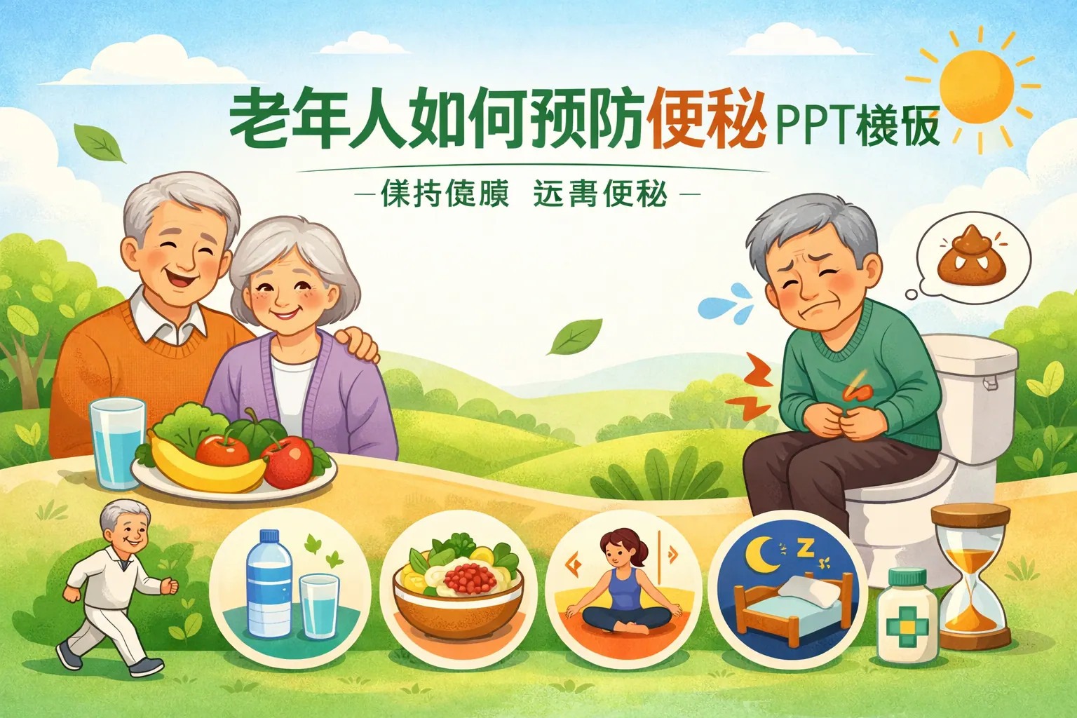 老年人预防便秘应从饮食结构、规律运动、科学排便习惯及慢病管理四个方面系统入手。通过增加膳食纤维和饮水摄入、坚持适度有氧运动、建立固定排便时间以及在医生指导下管理相关药物,可有效改善肠道功能。制作相关PPT时应结构清晰、图表丰富、内容实用,以提升健康宣教效果和执行力。