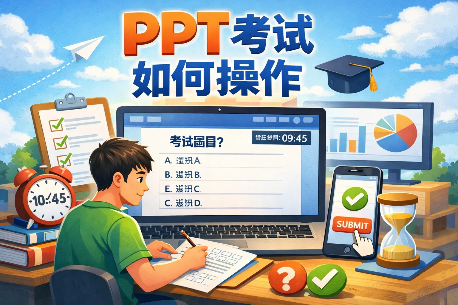 PPT考试主要考察演示文稿制作的基础操作与规范执行能力,核心在于熟练掌握文本排版、图表制作、动画设置与文件保存等常见功能,并严格按照题目要求完成。不同考试场景侧重点不同,但都强调准确性与时间管理。通过系统练习高频模块、熟悉评分标准并进行限时模拟训练,大多数PPT考试都可以顺利完成。未来考试趋势将更加注重数据呈现与综合表达能力。