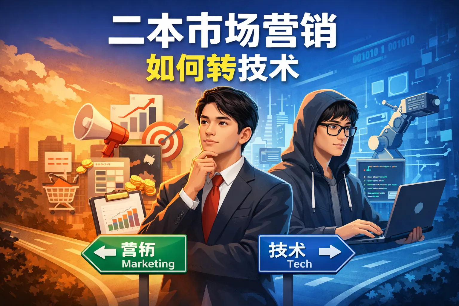 二本市场营销如何转技术