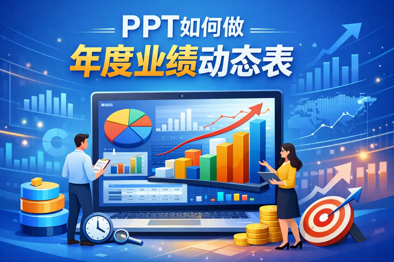 ppt如何做年度业绩动态表
