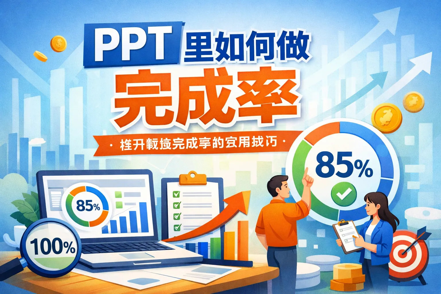 在PPT中制作完成率展示,核心在于将进度数据转化为清晰直观的可视化表达。常见方式包括环形图、条形图、仪表盘和进度条,不同场景应选择不同图表形式。高质量的完成率展示不仅要体现当前比例,还应加入目标对比和趋势分析,以增强说服力。通过优化数据结构与视觉层级,可以让完成率在汇报中更加专业、高效和具决策价值。未来,完成率展示将朝着数据联动和智能化方向发展。