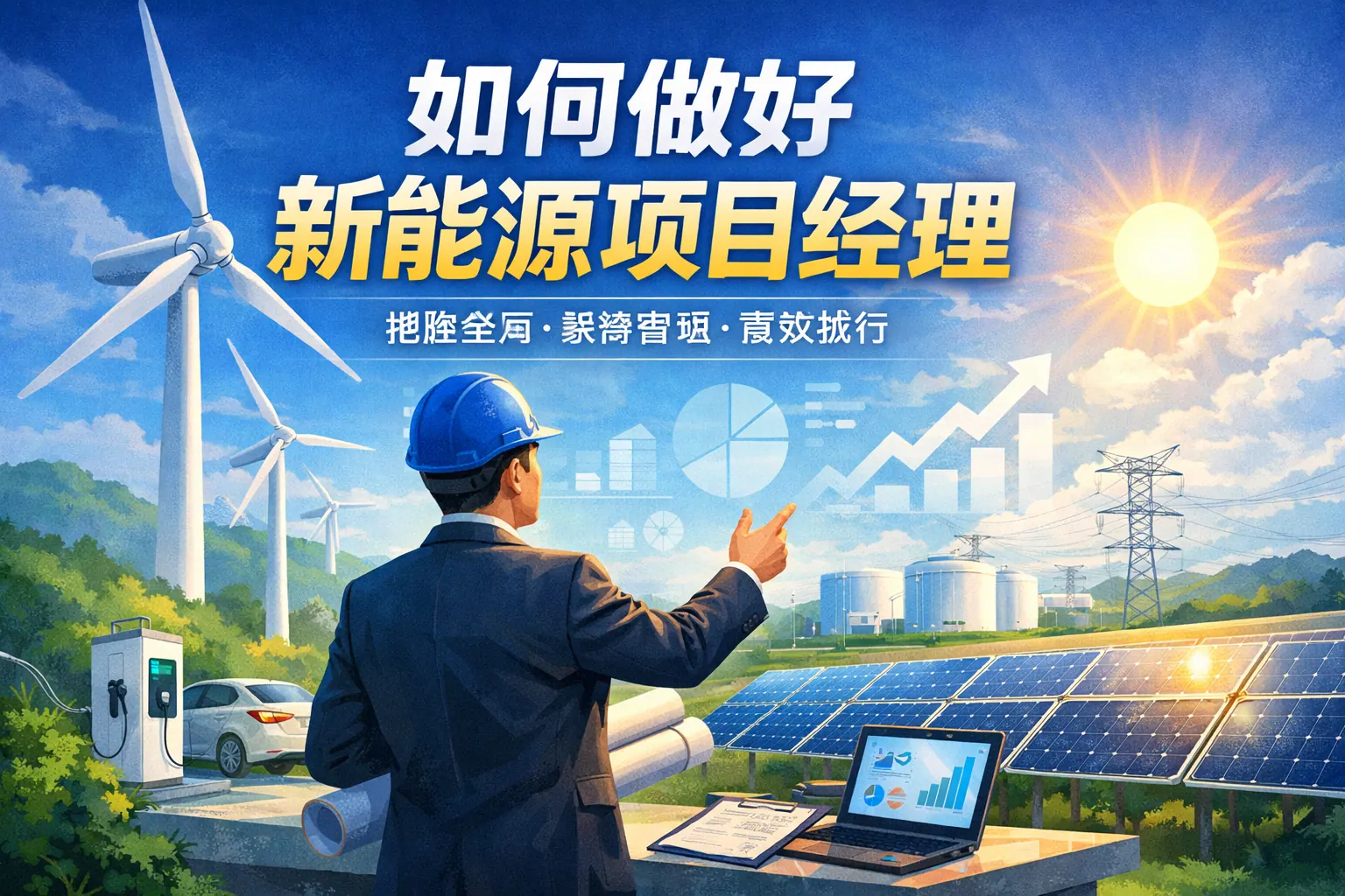 做好新能源项目经理的关键在于将行业认知与系统化项目管理能力结合,通过强化成本控制、政策理解、风险管理和跨部门协同能力,实现新能源项目的进度、质量与收益目标。随着能源转型加速,项目经理还需具备数字化管理与数据分析能力,并关注资产全生命周期与市场化机制变化,持续学习将成为长期发展的核心驱动力。