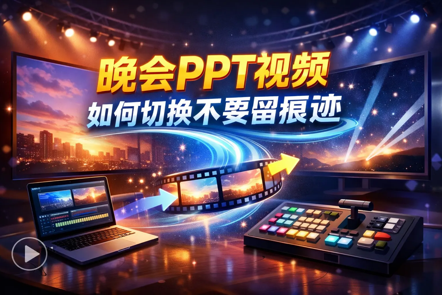 晚会PPT视频要实现无痕切换,关键不在于切换速度,而在于是否打断观众感知。通过统一PPT与视频的视觉风格、规范视频首尾帧设计、利用动画遮挡真实切换,并在播放环境和流程上提前做好设置,可以有效消除黑屏、跳帧和比例变化等问题。无痕切换本质是一套系统方法,需要从设计源头、视频制作、设备配置到彩排流程全面配合,才能让观众只关注内容本身,而忽略技术动作的存在。