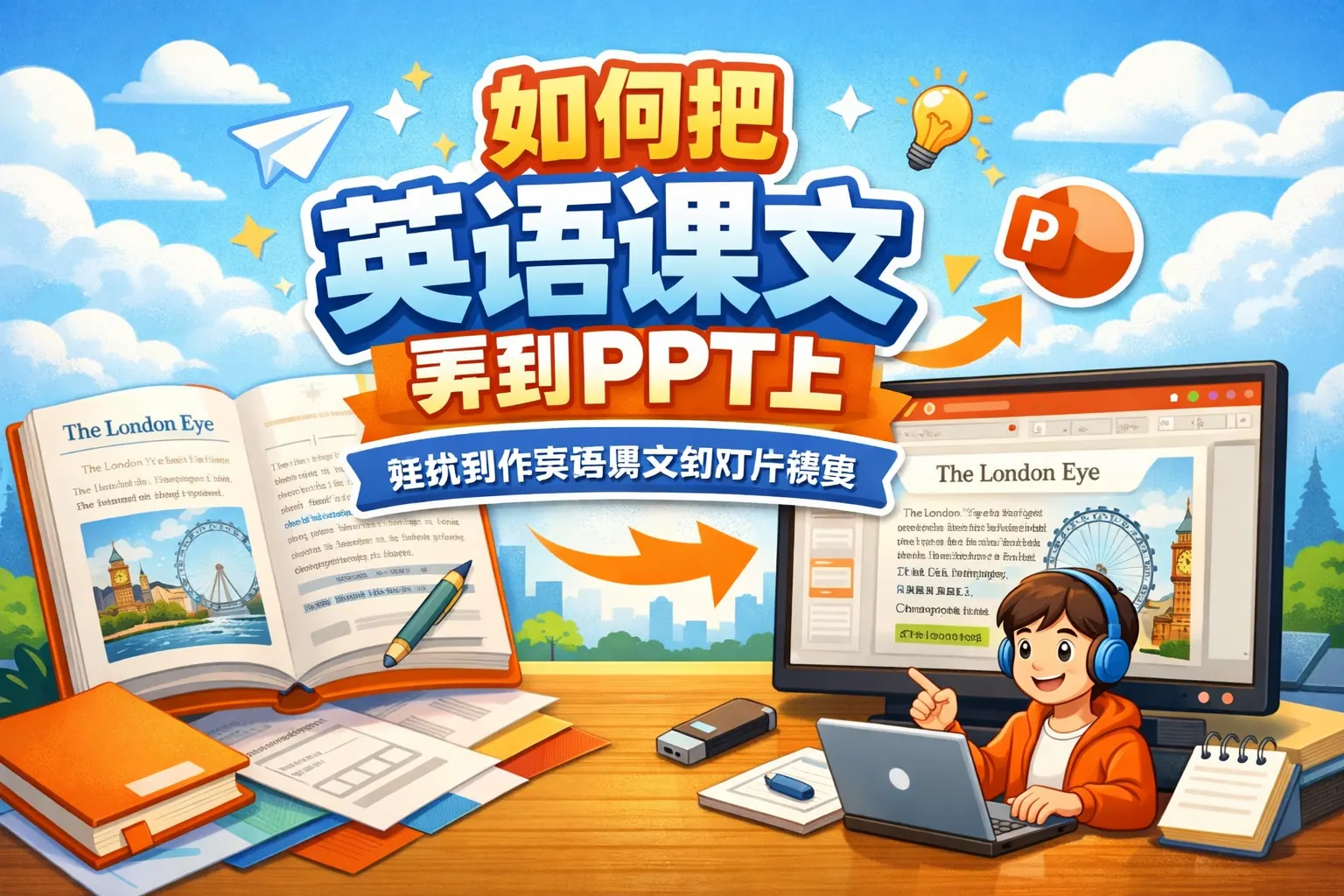如何把英语课文弄到ppt上