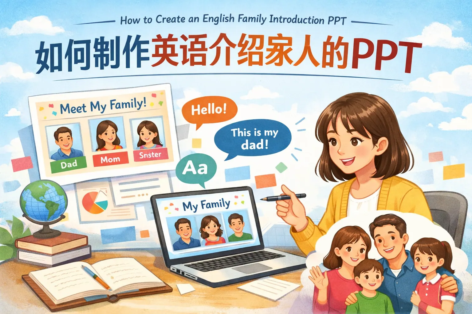 制作一份用英语介绍家人的PPT,关键在于结构清晰、表达自然、语言难度匹配受众水平。完整内容应包括家庭成员介绍、职业性格、兴趣爱好及家庭活动,并结合简洁句型和真实图片展示。不同年龄阶段需调整语言复杂度,演讲时注重语速与互动表达。通过合理排版、真实细节和适度情感表达,可以显著提升展示效果与英语表达能力。