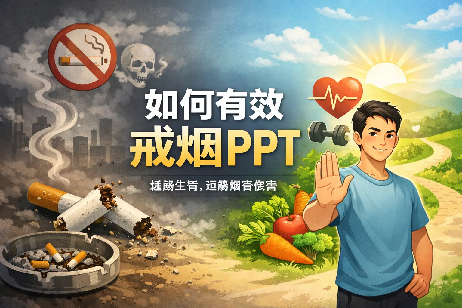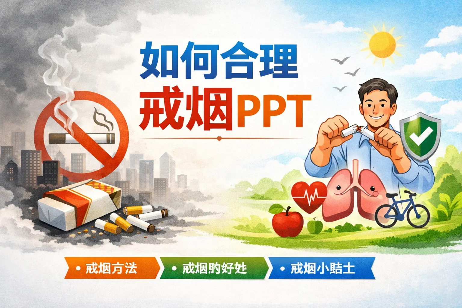 制作“如何戒烟”的英语PPT应围绕吸烟危害、尼古丁成瘾机制、科学戒烟方法和支持系统展开,结合权威数据与图表增强说服力。通过清晰结构与可执行步骤,如制定戒烟计划和建立社会支持体系,可以有效提升演讲效果与实际戒烟成功率。同时,展示戒烟后的身体改善时间线,有助于增强信心与行动动力。