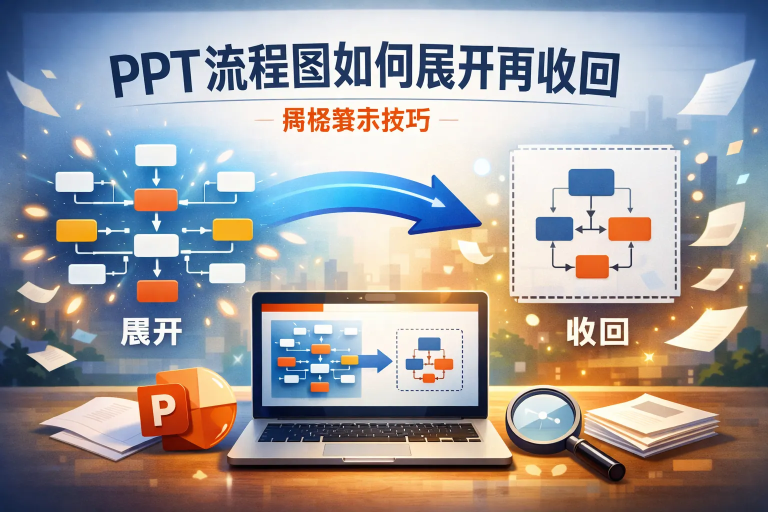 文章系统讲解了在 PowerPoint 中实现流程图“展开与收回”的核心思路与具体方法,指出虽然 PPT 没有原生折叠功能,但可以通过动画窗格、触发器和遮罩等方式稳定实现交互效果。内容从认知与信息架构角度解释了折叠流程图的价值,并对三种常见实现方式进行了原理拆解与适用场景对比。同时,文章总结了实际操作中的常见问题与设计优化建议,帮助读者在保证版式稳定的前提下提升流程图的表达效率,并对未来 PPT 交互趋势进行了理性预测。