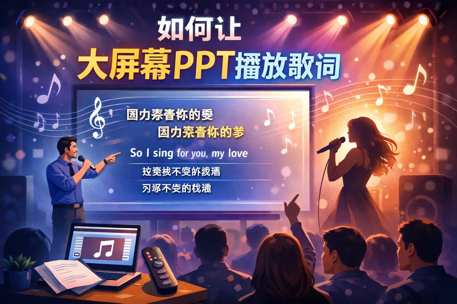 如何让大屏幕ppt播放歌词