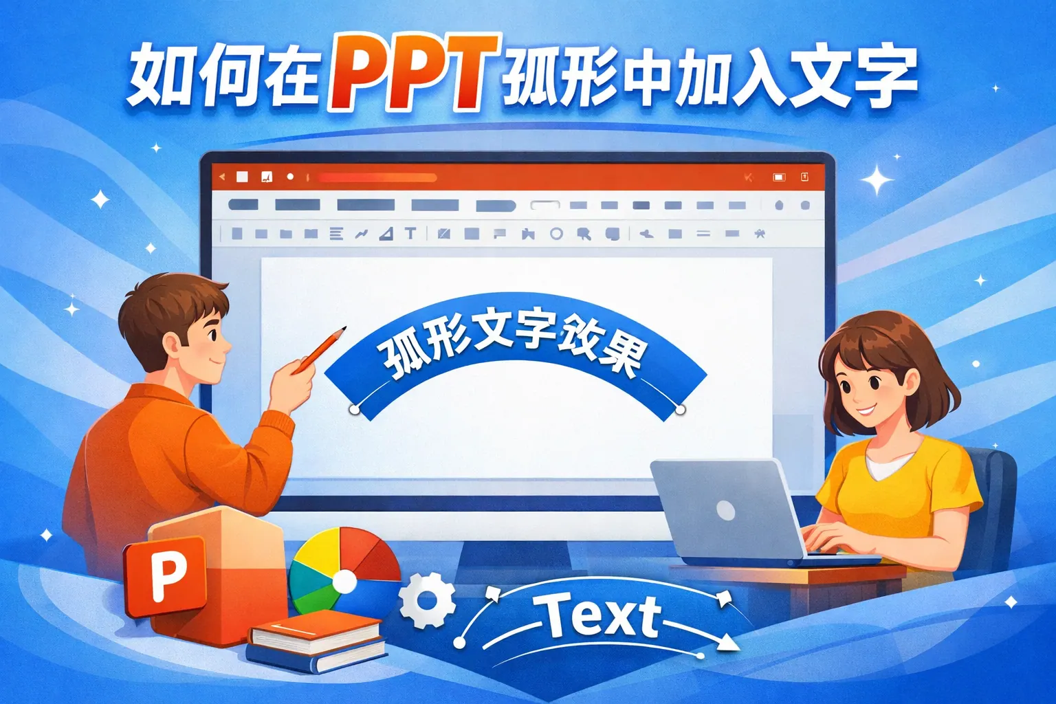 如何在ppt孤形中加入文字