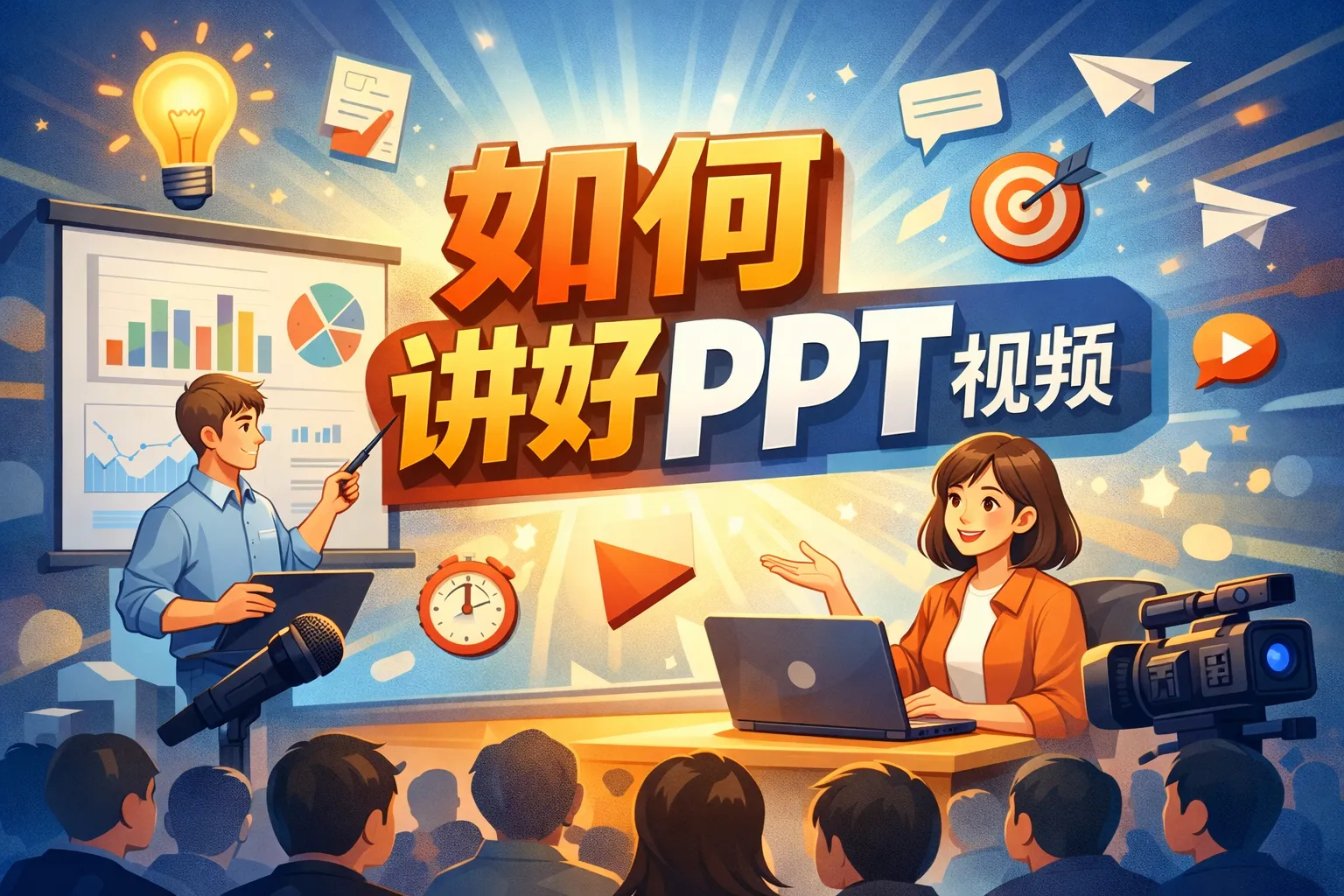 本文结合实战经验与权威行业报告,拆解PPT视频讲解从筹备到后期迭代的全流程动作,指出提前3轮彩排可降低60%讲解失误率、场景化导入可提升42%观众留存率,通过对比线上线下PPT的核心差异给出镜头适配重构技巧,分享镜头感塑造与后期剪辑优化方法,同时提供企业级PPT视频的多平台复用与数据迭代路径,帮助职场人打造高传播、高转化的PPT讲解视频。