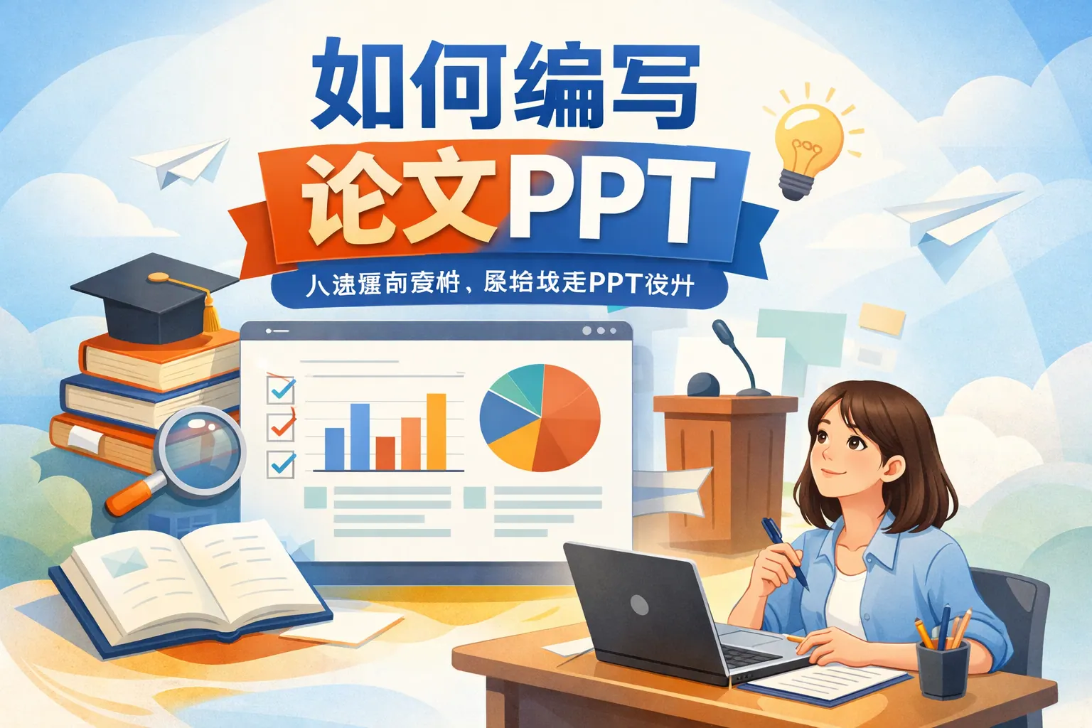 编写论文PPT的关键在于围绕研究问题与创新结论进行结构重构和视觉优化,而非简单复制论文内容。高质量论文PPT应明确使用场景,构建清晰逻辑框架,提炼核心观点,强化数据图表表达,并突出研究贡献与创新价值。同时需优化排版设计、控制时间节奏、做好答辩预案,从内容、结构与表达三个层面系统提升展示效果,使听众在有限时间内准确理解研究成果与学术意义。