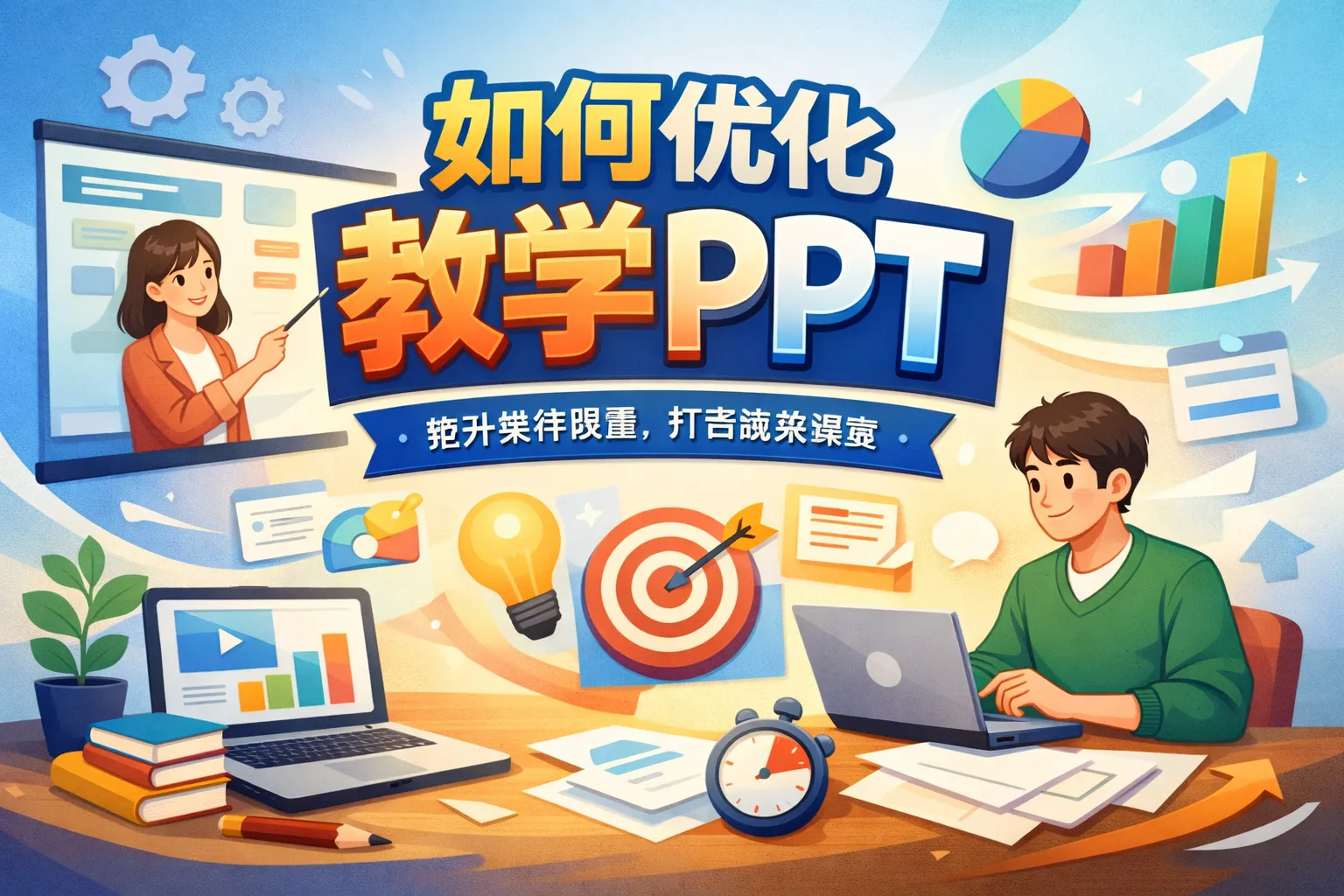 本文围绕教学PPT优化展开,从逻辑重构、视觉优化、互动设计、场景适配和数据复盘五个维度,结合行业权威报告数据与实战方法,讲解如何提升教学PPT的信息传递效率与学生注意力留存率,附带传统与优化后PPT的对比表格,为教师提供可落地的全流程优化路径。