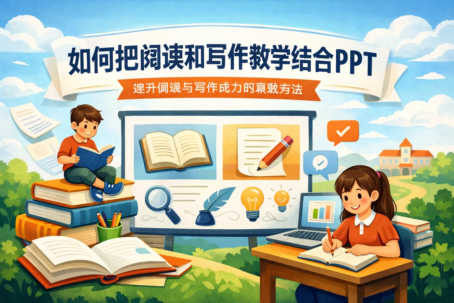 将阅读与写作教学结合并通过结构化PPT呈现,是提升语文课堂效率与学生综合表达能力的有效方式。阅读为写作提供结构与语言范式,写作深化阅读理解,通过“文本解构—技巧提炼—写作迁移—互动评价”的课堂路径,可以实现读写互促。科学设计PPT框架、强化结构可视化与任务引导,是实现读写融合教学的关键。未来在数字化趋势推动下,读写整合教学将更加注重个性化反馈与数据支持。