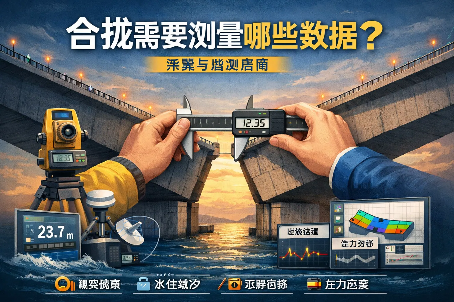 合拢测量需重点关注几何位置、结构变形、环境温度及应力内力四大类数据,包括轴线、标高、挠度、沉降、温差及受力状态等关键指标。通过多维度测量与动态校核,才能确保结构对接精度与整体安全。未来合拢测量将向数字化、智能化与实时监测方向发展,提高工程质量与风险控制水平。