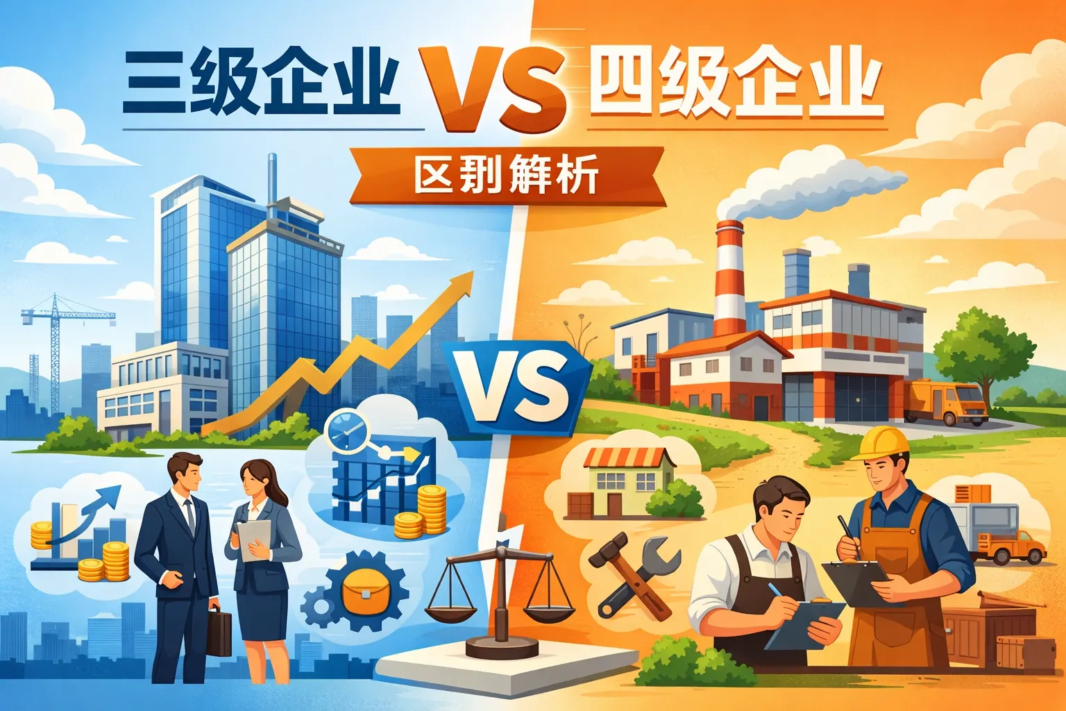 三级企业与四级企业的主要区别体现在资质门槛、注册资本、人员配置、业绩要求以及可承接项目规模等方面。三级企业通常具备更高的人员与业绩标准,可参与更大规模项目,市场竞争力和融资能力更强;四级企业多为起步或小规模企业,业务范围相对受限。随着资质管理改革推进,未来企业等级将更加注重实际能力与信用评价,企业应结合发展阶段合理规划升级路径。