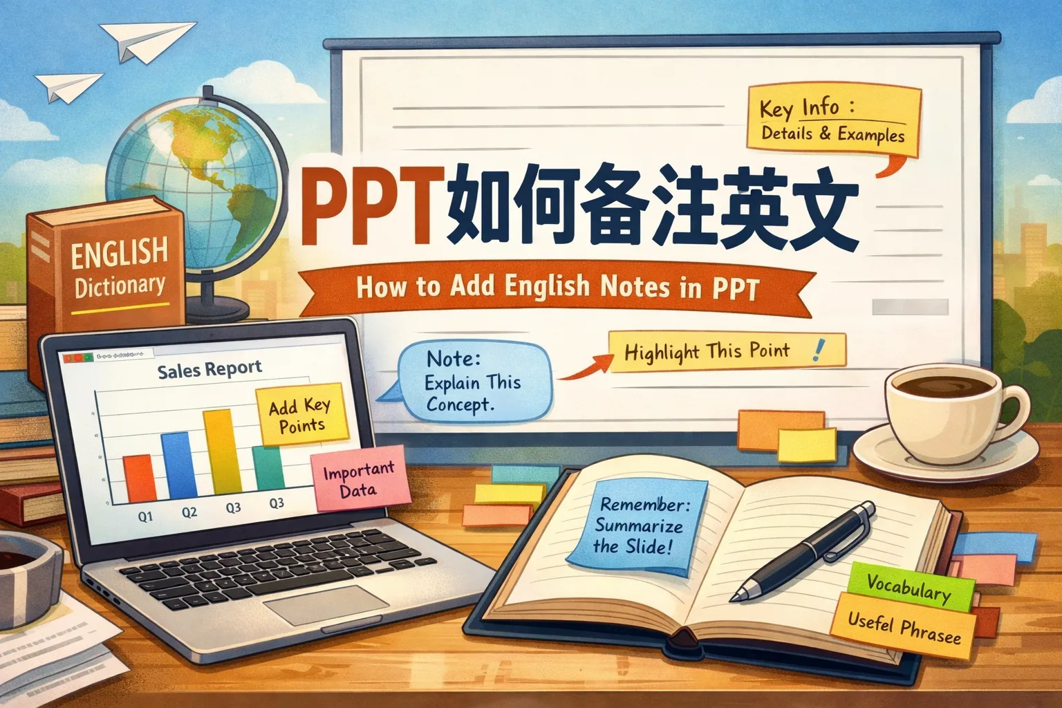 ppt如何备注英文