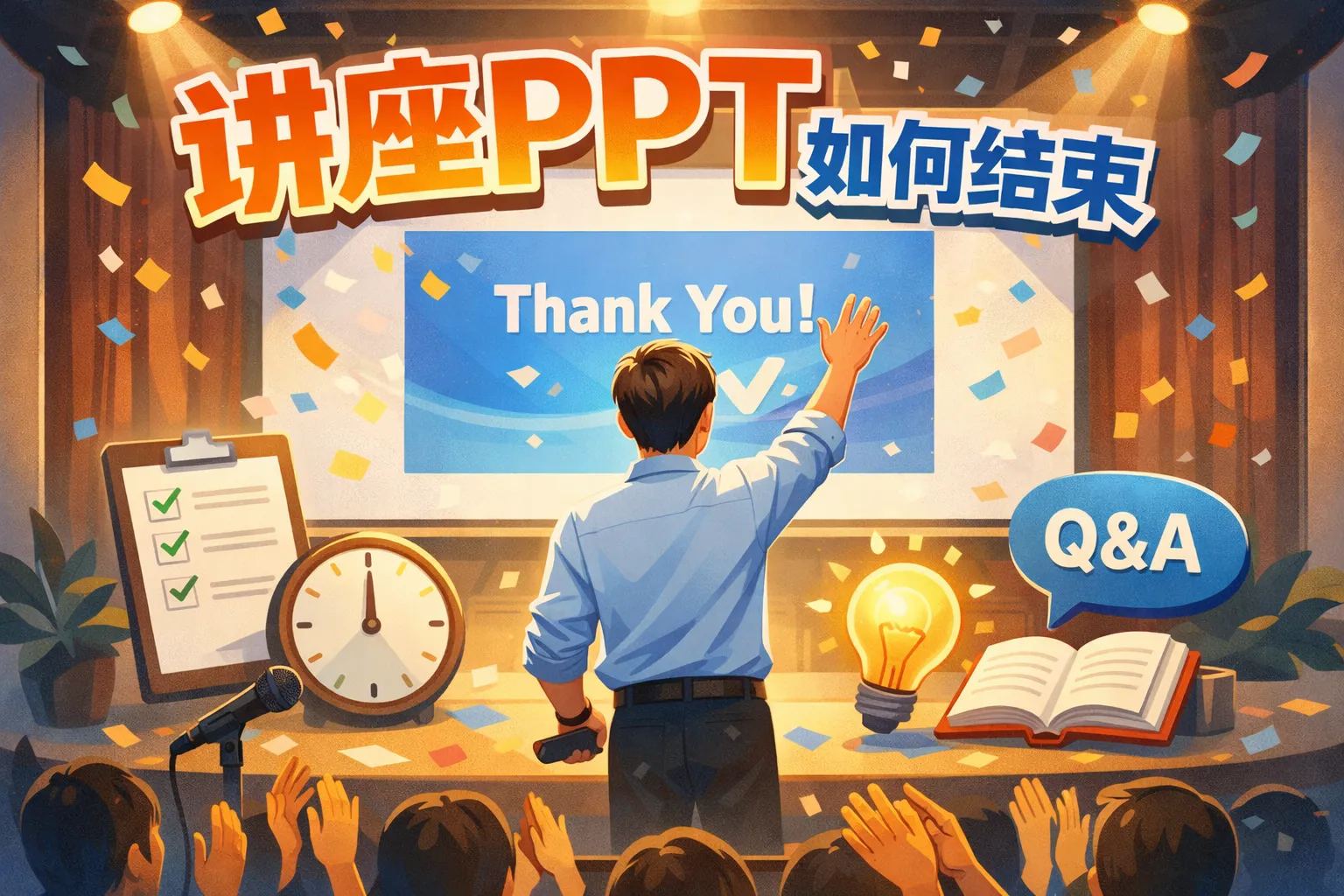 本文围绕讲座PPT收尾设计展开,指出闭环式收尾可提升听众留存率30%以上,行动指令式收尾转化率比纯感谢式高2.1倍,先拆解了新手常踩的三类收尾雷区,再讲解了闭环回应、行动指令、价值升华、资源链接四种高转化收尾模型,结合线上、线下、企业内训场景给出适配方案,同时介绍了收尾页视觉设计规范、数据化优化技巧及复盘迭代方法,帮助从业者打造高留存高转化的讲座收尾环节。