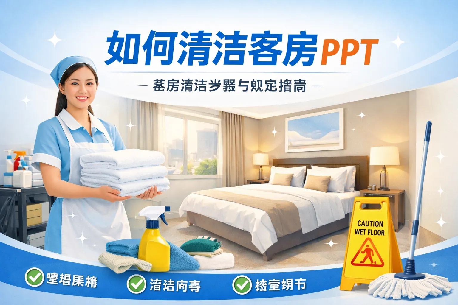 制作客房清洁PPT的关键在于围绕标准化流程、工具规范、质量验收与安全管理进行系统设计,通过结构清晰的模块划分、图文结合的流程展示以及量化考核机制,提升培训效果与执行效率。文章从流程拆解、工具展示、质量评分、安全规范到培训实施进行了全面讲解,并结合行业权威资料说明标准化培训对提升服务质量的重要作用,同时分析了未来数字化与绿色清洁的发展趋势。