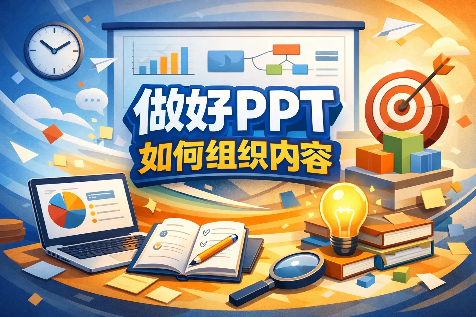 本文围绕PPT内容组织展开,介绍了以受众为核心的底层逻辑,梳理从开场到收尾的全流程架构步骤,对比不同场景下的内容组织模板,指出常见内容组织误区并给出优化方案,结合权威报告数据说明结构化内容对提升受众接收效率的作用,同时提供可落地的自检方法帮助用户高效完成PPT内容搭建。