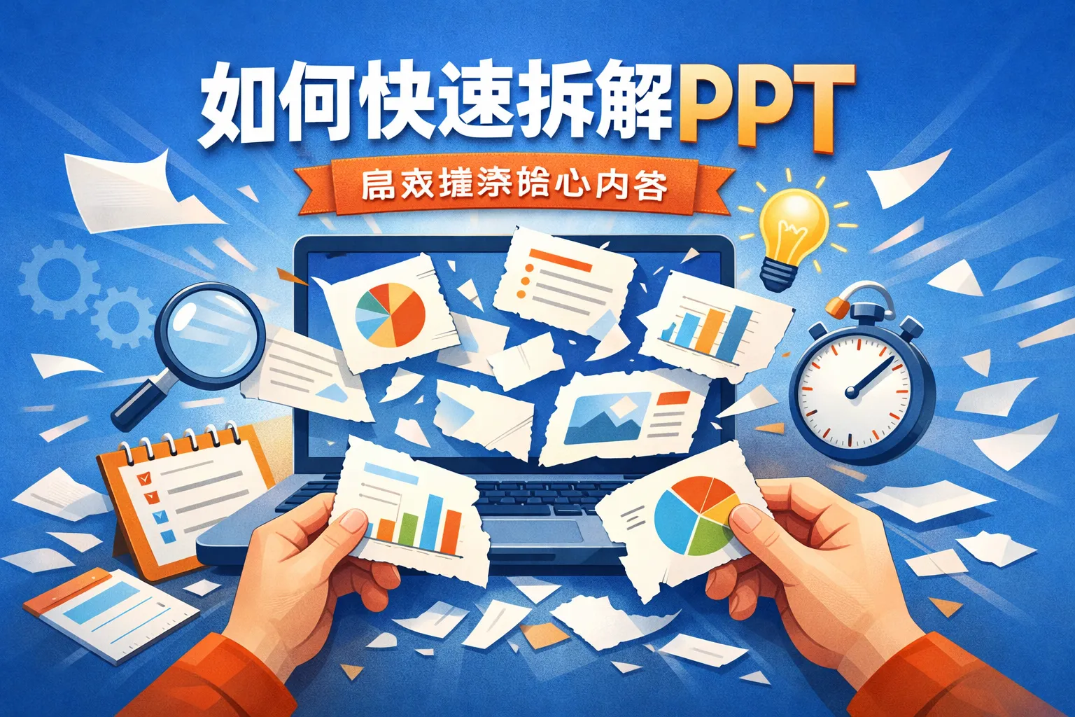 这篇文章分享了快速拆解PPT的标准化流程,从明确拆解目标到四步拆解动作,结合工具对比数据和行业报告,讲解了拆解后的素材复用与合规注意事项,帮助职场人提升拆解效率与素材复用率,规避版权风险和无效拆解动作。