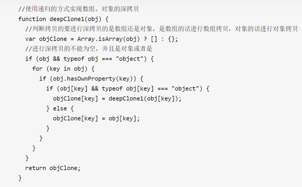 1、使用递归的方式实现数组、对象的深拷贝