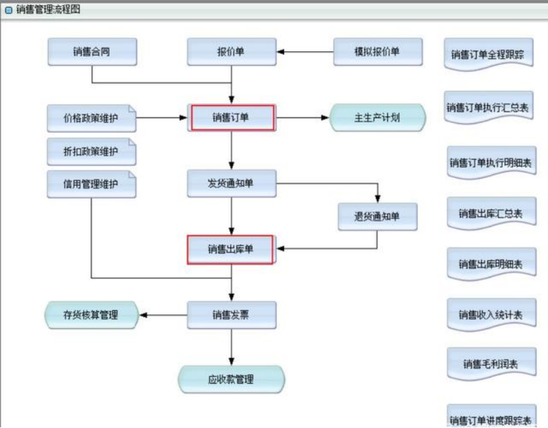 销售管理系统:是通过销售报价单、销售订单、销售出库单、销售退货单、销售发票处理、客户管理、价格及折扣管理、订单管理、信用管理等功能综合运用的管理系统,对销售全过程进行有效控制和跟踪,实现完善的企业销售信息管理。