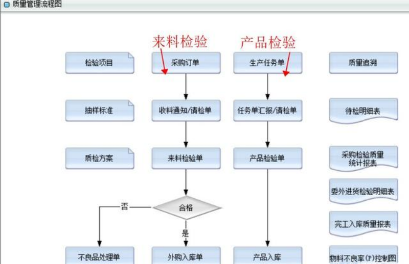 质量管理系统:以物料、物料清单、抽样标准、检验方案等为基础信息,以请检单为数据输入源,进行质检验过程的处理及结果记录。