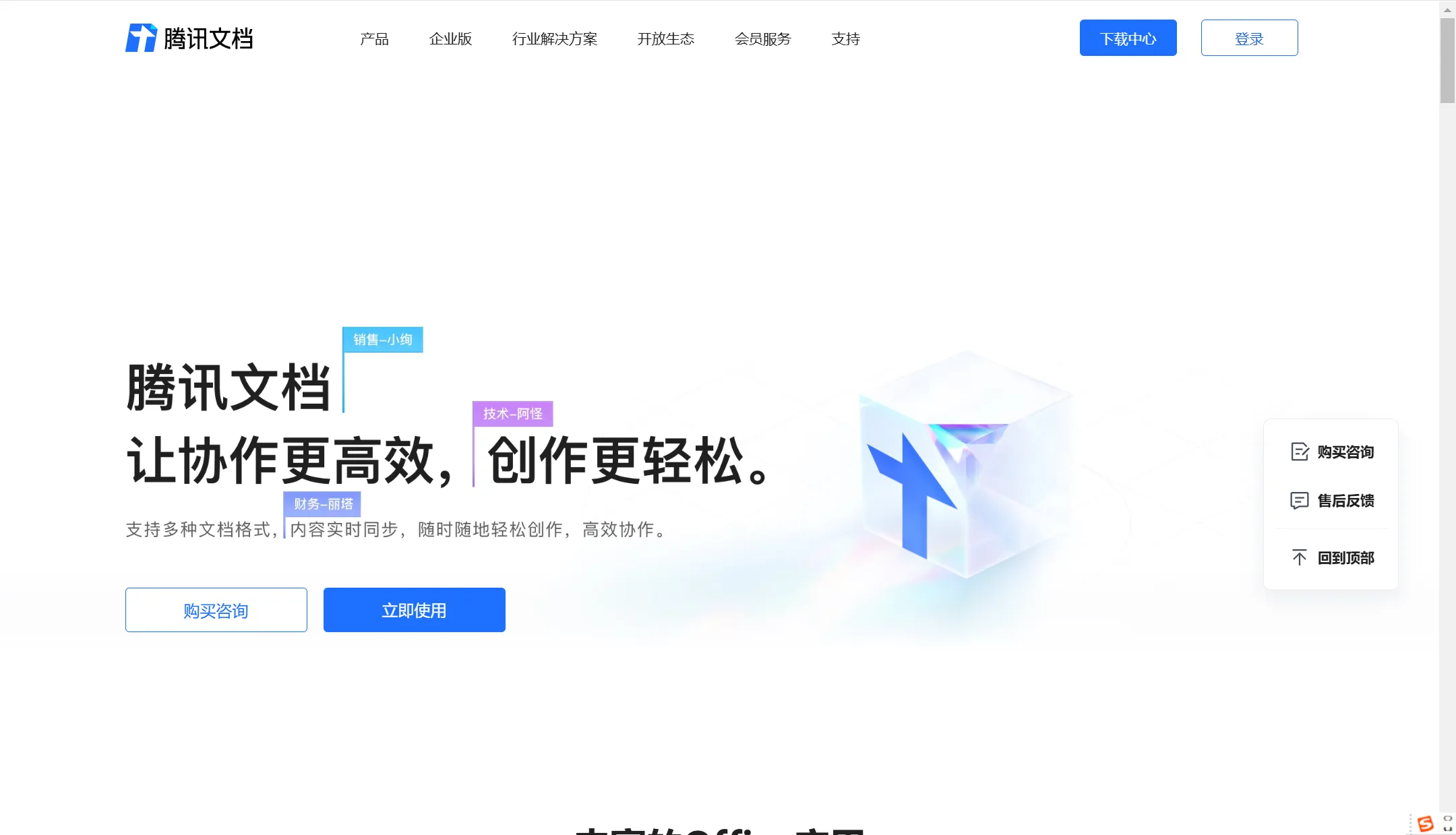 适用于需要高效文档协作的大型企业、教育机构以及政府部门,特别是已经在使用腾讯其他产品的用户。